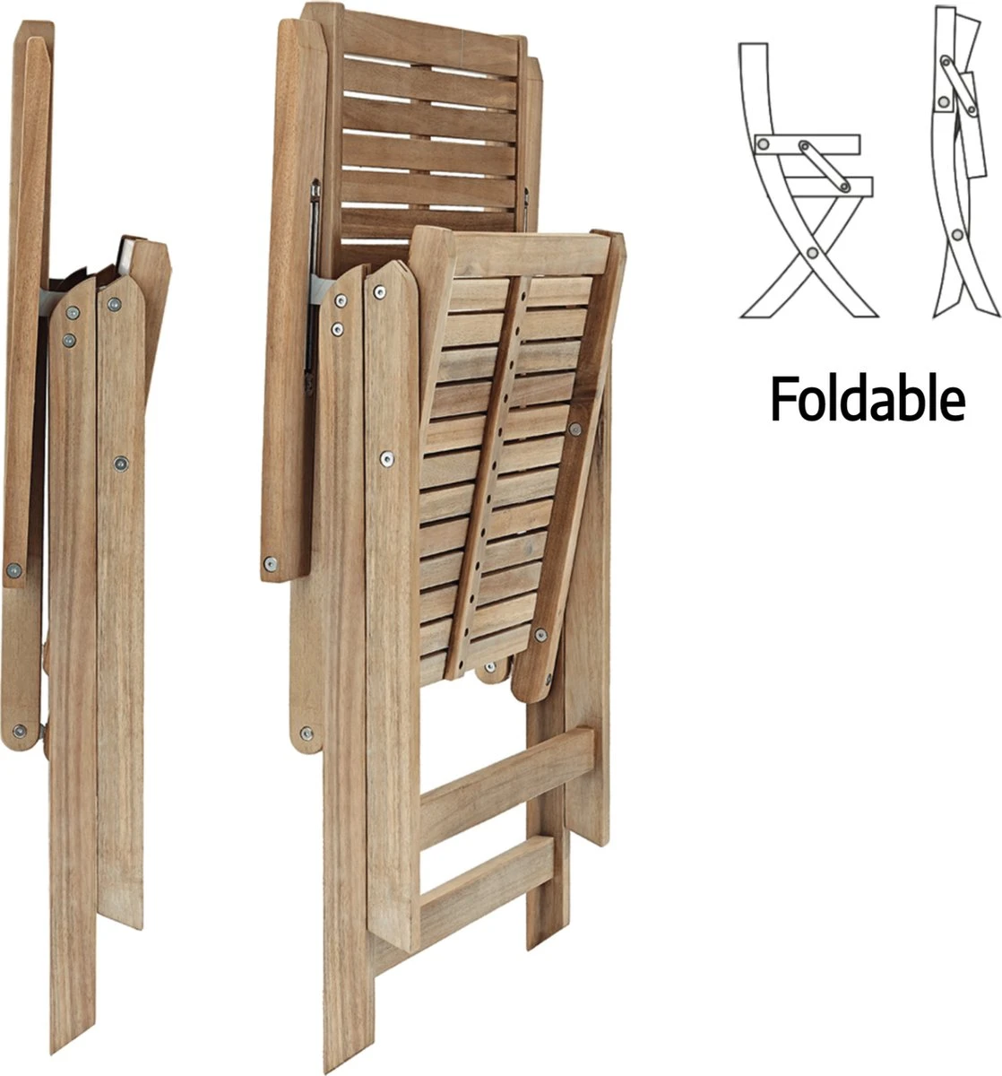 - Durable : le bois d’acacia, un bois tropical, est intrinsèquement durable et solide, capable de résister à la vie en plein air et aux variations climatiques. La quincaillerie en acier galvanisé est durable, antirouille et résistante aux intempéries.