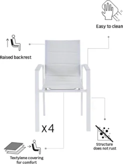 - DESIGN : Grâce à leur design classique, ces 4 fauteuils de jardin blancs s’adaptent à vos différents styles. Conçus pour les balcons, les terrasses, les vérandas et les jardins, ils deviendront vos indispensables aux beaux jours. Ils donnent une touche moderne à vos espaces extérieurs.