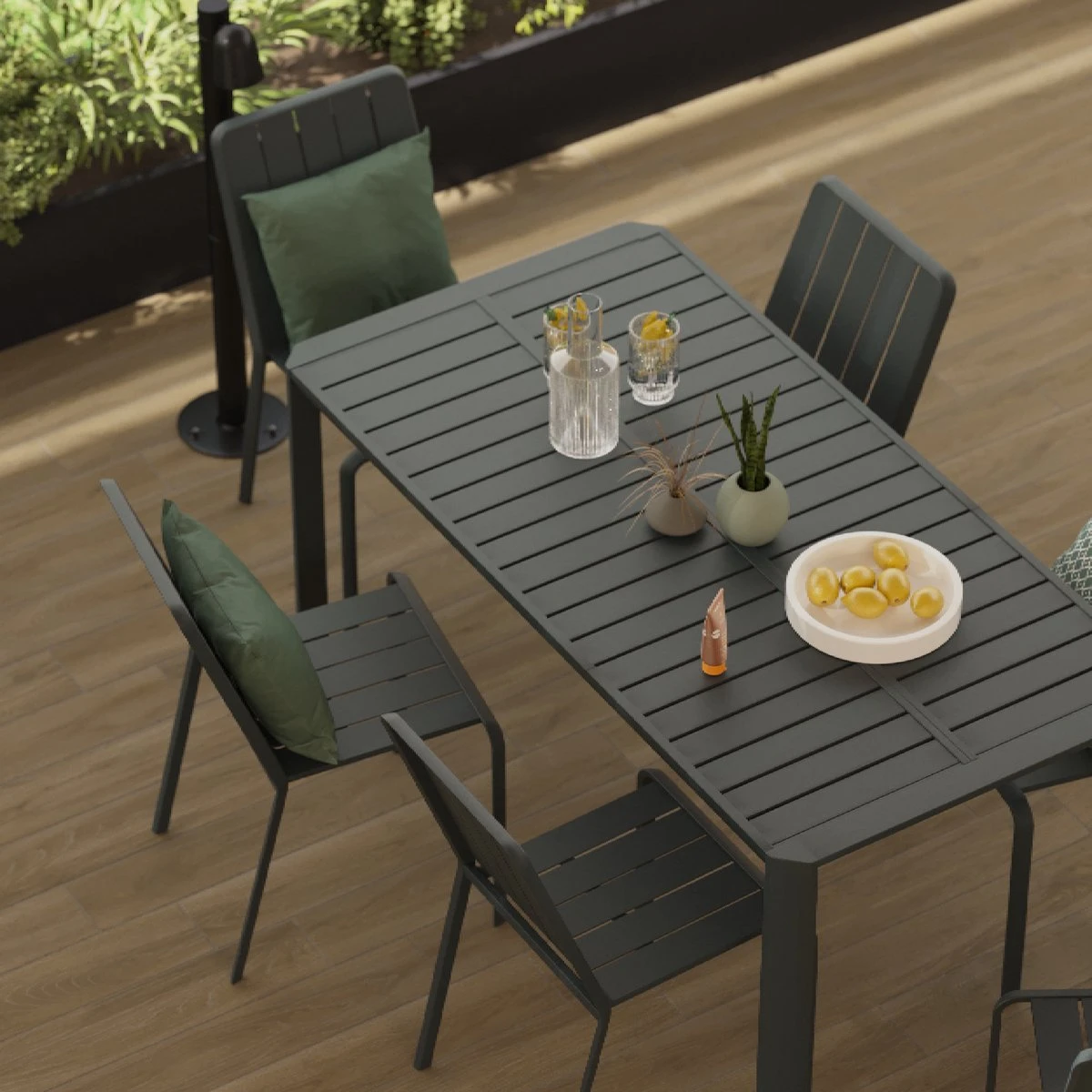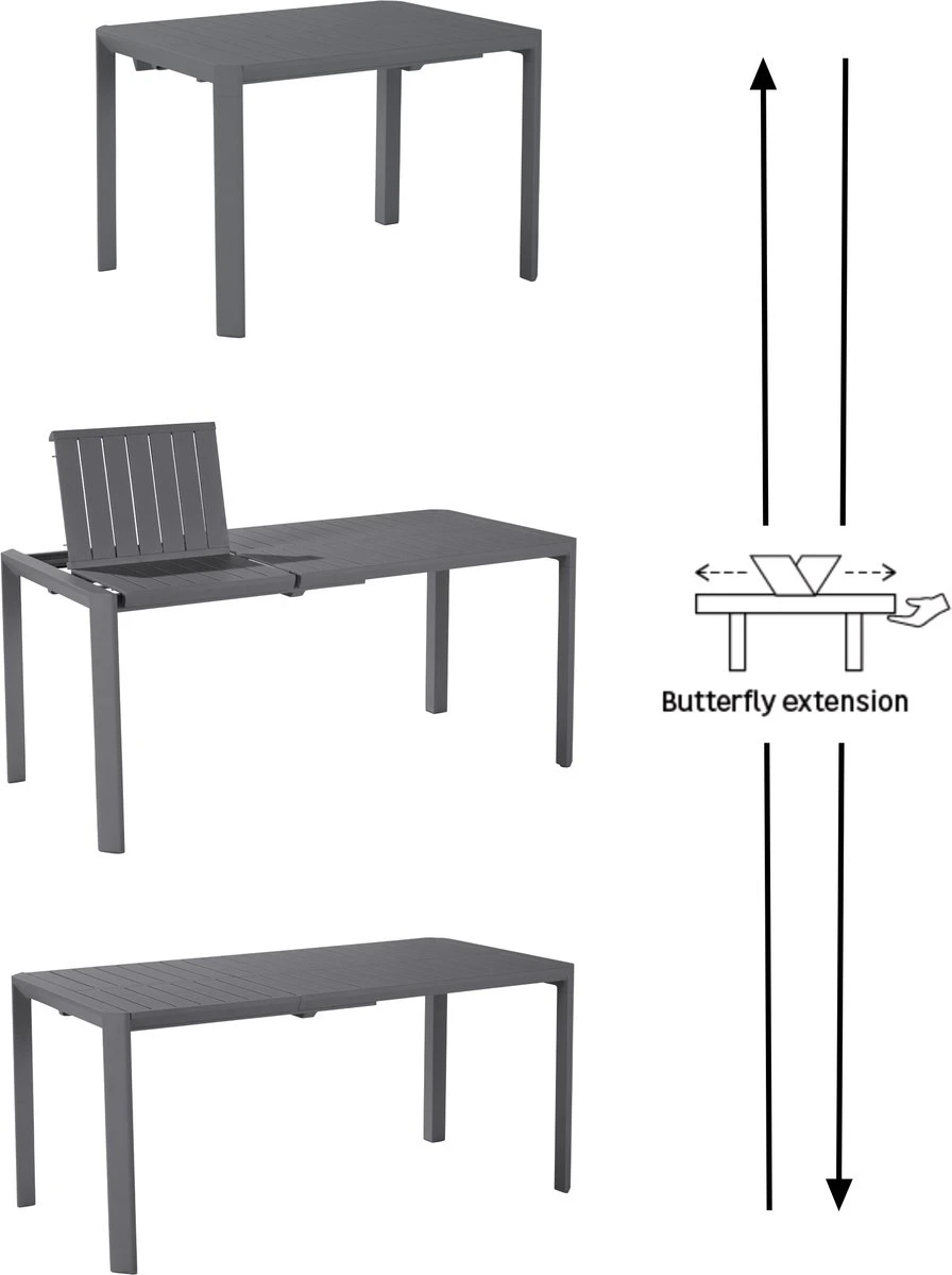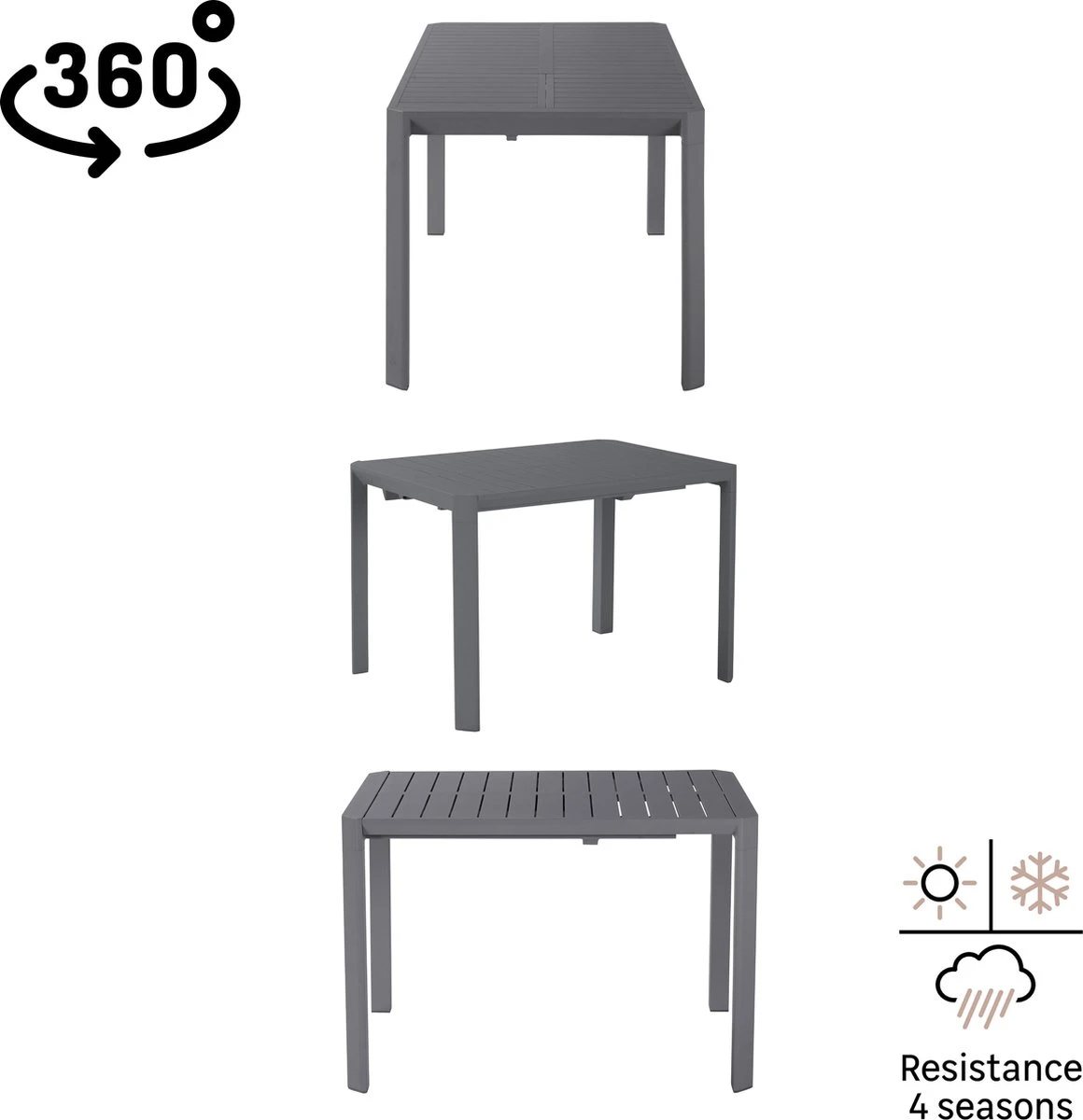 Avec la table extensible IDAHO, vous êtes toujours prêt à vous amuser en plein air. En position de base, cette table IDAHO est conçue pour 4 personnes. Grâce à la fonction gigogne intégrée au plateau de la table, vous pouvez asseoir 2 convives supplémentaires si nécessaire. Les pieds sont intégrés dans les parties extensibles de sorte qu’ils restent sur les coins de la table et garantissent ainsi toujours suffisamment d’espace pour les jambes. La construction en aluminium résistant aux intempéries et les vis en acier inoxydable permettent de laisser la table à l’extérieur en permanence. Les lignes épurées de la table IDAHO reflètent ses normes de conception élevées, renforcées par le choix de l’aluminium comme matériau principal. Ten , la gamme IDAHO se décline dans une variété de couleurs douces, pour que vous puissiez toujours être tendance et personnaliser votre espace extérieur.