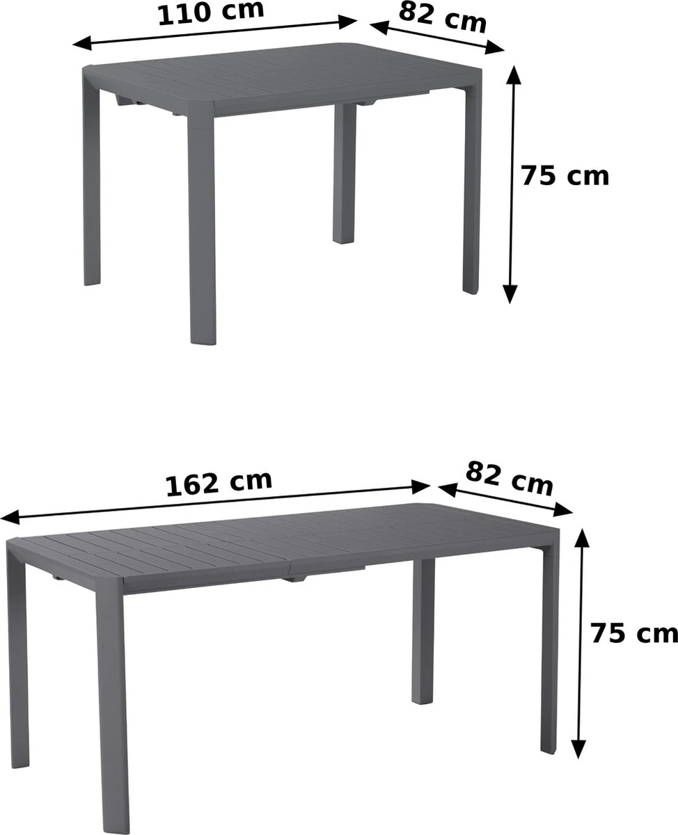 - EXTENSIBLE : Les pieds sont intégrés dans les parties extensibles afin qu’ils restent sur les coins de la table et offrent toujours suffisamment d’espace pour les jambes. Cette table extensible est extensible d’une longueur de 110 cm à 162 cm et s’adapte ainsi à vos convives et à vos envies. Idéal pour réunir 4 à 6 personnes.