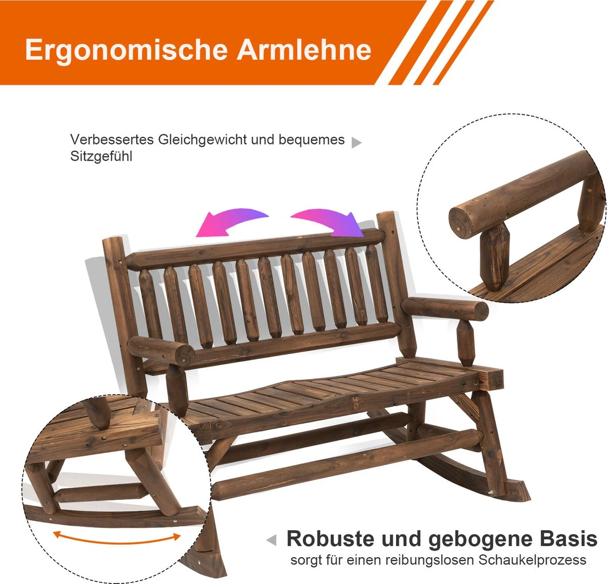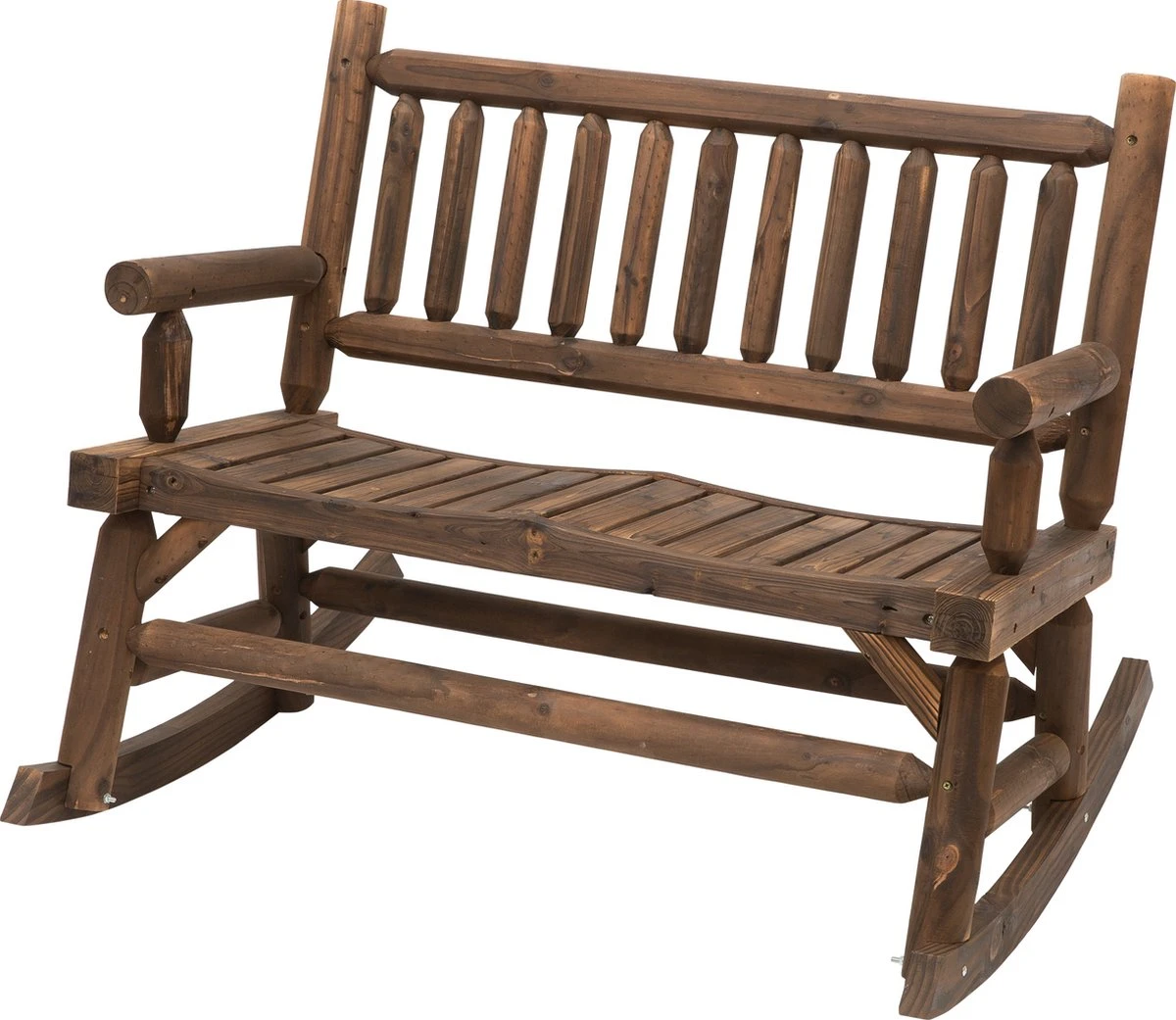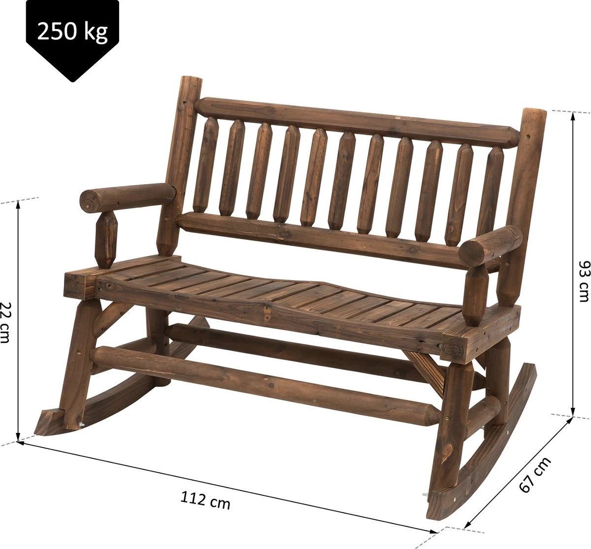 Outsunny Chaise à Bascule Avec Accoudoirs Chaise De Jardin Chaise à Bascule Bois Massif Brun Foncé 84A-133