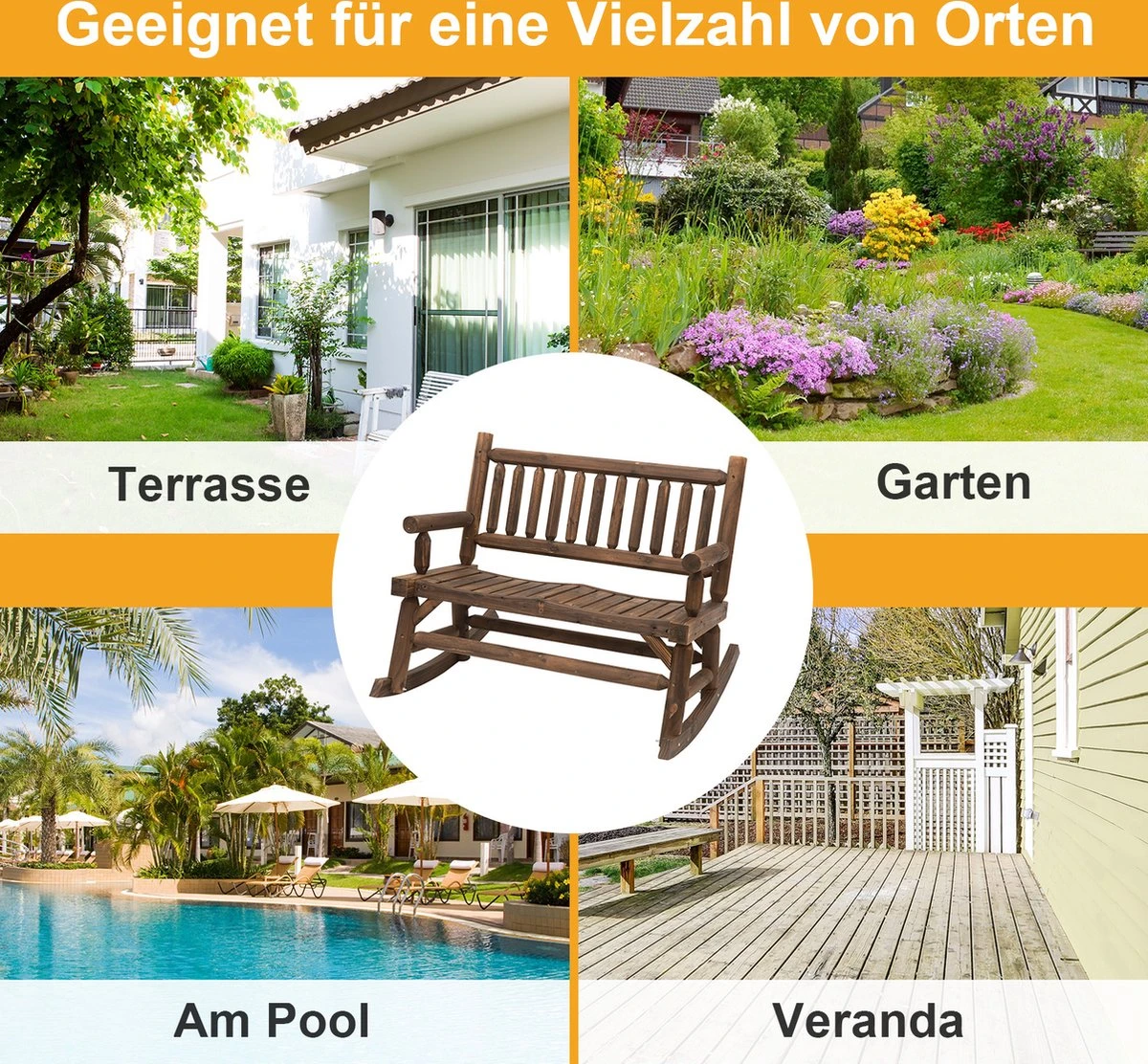 Imaginez que vous et un ami vous balanciez d’avant en arrière sous le chaud soleil de l’après-midi avec notre balançoire de porche classique. Notre balançoire de style rustique sera sans aucun doute votre premier choix en matière de confort et de qualité. Non seulement il est fait de bois d’épicéa de haute qualité qui ne se pliera pas aux éléments, mais il possède également un dossier et un siège confortables pour une meilleure expérience de détente. Profitez d’une journée de détente avec cette chaise berçante robuste et confortable ! Propriétés : Idéal pour le jardin, le patio, la cour et plus encore · Style classique · Bois d’épicéa de haute qualité · Capacité de charge jusqu’à 250 kg · Design ergonomique pour un grand confort – Montage facile Données techniques : Couleur : marron foncé Matière : bois d’épicéa · Dimensions : 112 lx 67 lx 93 h cm Hauteur d’assise : 47 cm · Dimensions (accoudoir) : 45 lx 6,5 l cm · Capacité de charge : 250 kg Contenu de la livraison : 1 x banc de balançoire · Note d’expédition : Geen d’expédition vers les îles néerlandaises.