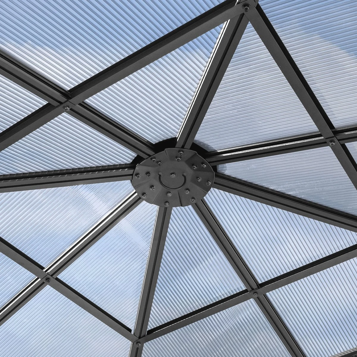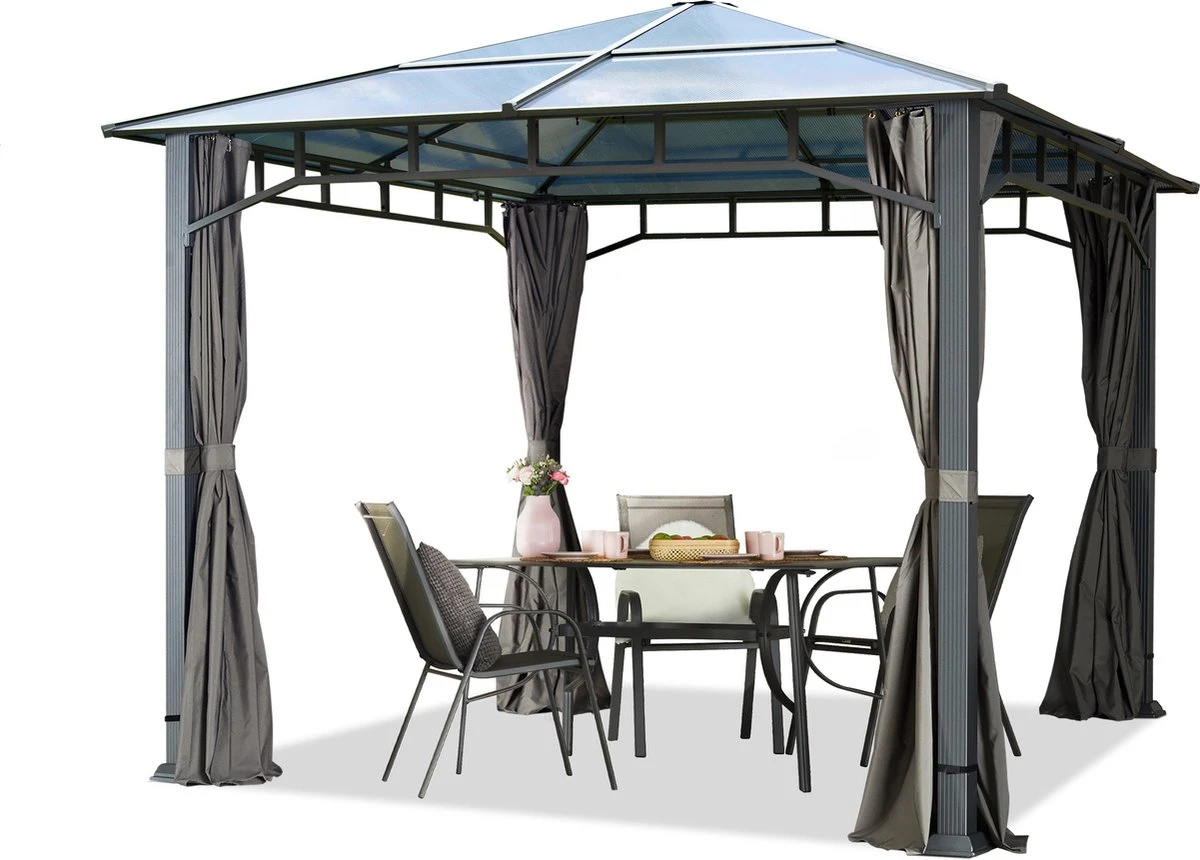 Le pavillon de jardin Sunset Deluxe mérite une place permanente dans le jardin et est là pour toutes les occasions, comme un magnifique auvent lors d’une fête d’été ou comme un point culminant romantique en hiver. Non seulement parce qu’il est prêt pour l’hiver avec une charge de neige maximale de 80 kg / m², mais aussi en raison de la combinaison de la construction en aluminium extrêmement solide avec revêtement en poudre et des tôles de toit en polycarbonate de haute qualité, qui assure la meilleure combinaison possible de style et de durabilité. Grâce au toit transparent, le pavillon Sunset Deluxe fournit toujours la bonne lumière. Les plaques de toit de 8 mm d’épaisseur, 100% étanches et offrant un facteur de protection UV de 50+, garantissent que ce pavillon est également le mieux équipé contre toutes les conditions météorologiques. Les parois latérales incluses, que vous pouvez facilement déplacer via un système de double rail de haute qualité, vous invitent à essayer différents modèles et donnent également au pavillon une apparence luxueuse. Ce pavillon a été développé avec un accent sur la qualité et des pièces parfaitement ajustées, ce qui garantit une construction simple. Ce pavillon Sunset Deluxe créera donc un sentiment de fiabilité et d’enthousiasme dès le premier instant!