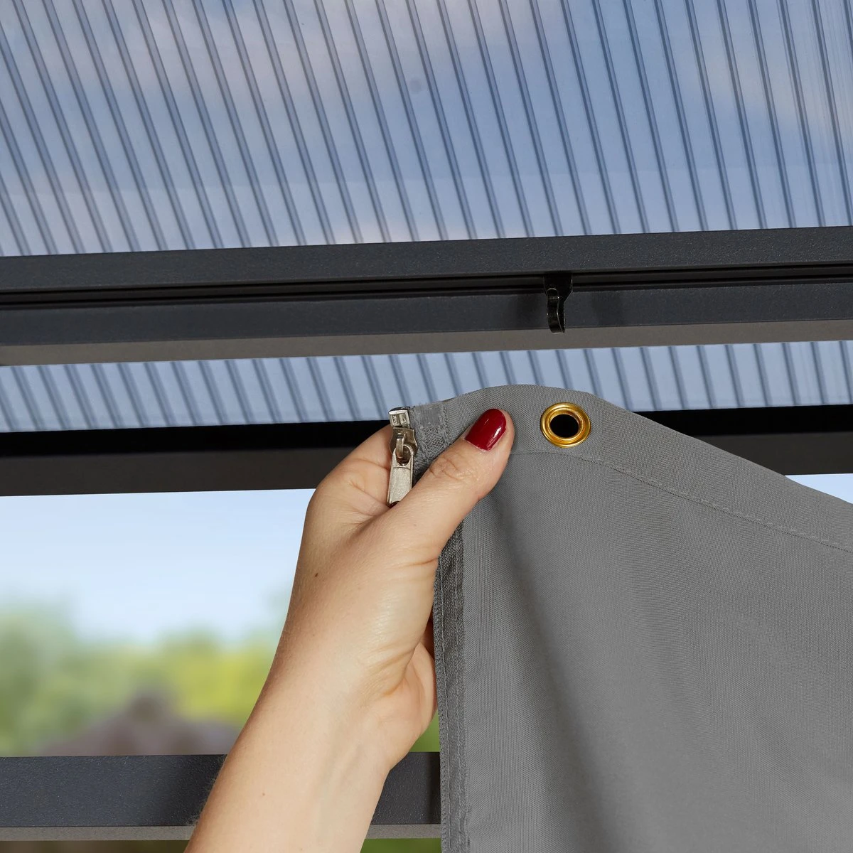 - incl. 4 parois latérales : environ 180 g/m² polyester avec revêtement PA, système à double rail de haute qualité, entièrement refermable avec fermeture éclair