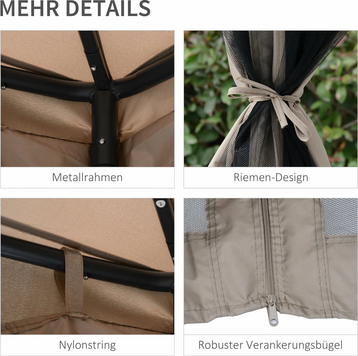 8 piquets d’ancrage au sol et 4 haubans offrent une stabilité supplémentaire