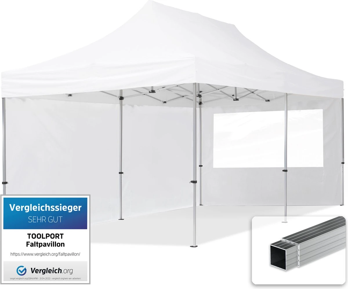 Pavillon Pliant, Tente Pliante, 3 X 6 M, 2 Parties Latérales 32 Mm, Pavillon En Aluminium, Tente De Réception, PES300, 100 % étanche, Blanc