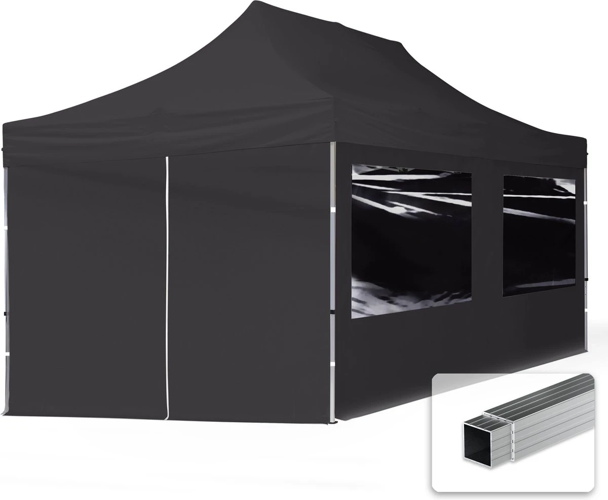 Pavillon Pliant, Tente Pliante, 3 X 6 M, 4 Panneaux Latéraux 32 Mm, Pavillon En Aluminium, Tente De Réception, PES300, 100 % étanche, Noir