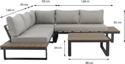Ibiza XL Chaise Canapé Salle à Manger Salon Ensemble 4 PiÚces Gris Avec Table Réglable Carré