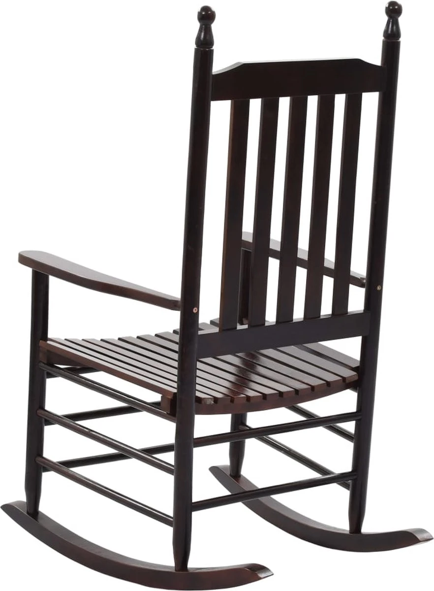 Le fauteuil est fait de bois dur massif avec une finition durable. La chaise se distingue par sa durabilité et sa résistance aux intempéries. Le fauteuil à bascule peut être placé dans le salon ainsi que sur la terrasse, pour lire un livre ou pour déguster une tasse de café.
