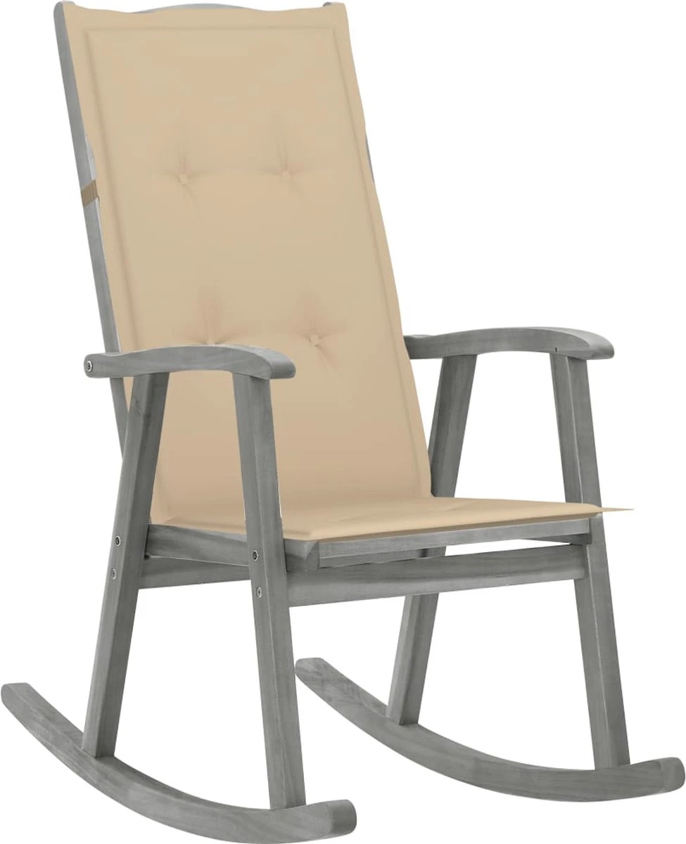 Cette chaise berçante, fabriquée en bois d’acacia massif, se distingue par sa durabilité et sa résistance aux intempéries. Le dossier haut contribue au confort d’assise. Vous pouvez placer le fauteuil à bascule dans votre salon ou sur votre terrasse pour profiter d’un bon livre ou d’une tasse de café. De plus, l’ kussen inclus offre un confort supplémentaire pendant la détente. Il est composé à 100 % de polyester qui a été traité pour le rendre imperméable. Chaque kussen a une bande élastique et deux jeux de ficelles pour le fixer solidement à la chaise.