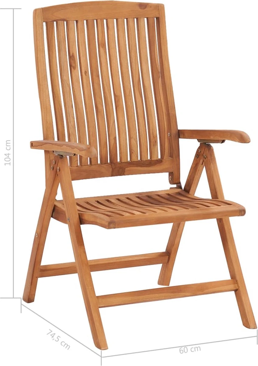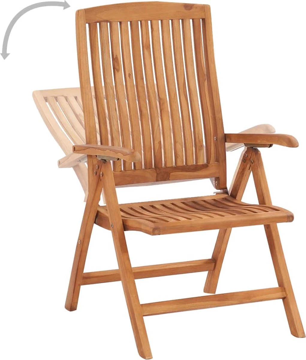 Cet ensemble de meubles en teck est fabriqué à partir de teck extrêmement durable et a été arrosé, séché au four puis finement poncé pour lui donner un aspect très lisse. Le teck est connu pour sa solidité et sa résistance aux intempéries exceptionnelles, ce qui le rend beaucoup plus adapté aux meubles de jardin que tout autre type de bois. Le bois de teck est le choix parfait si vous souhaitez acheter des meubles de jardin durables. Le teck Extra épais et robuste offre une grande stabilité. L’assise à lattes et les accoudoirs et dossier incurvés sont parfaits pour votre corps. Les dossiers des chaises sont réglables sur 6 positions, afin que vous puissiez toujours trouver la position la plus confortable. Lorsqu’il n’est pas utilisé, l’ensemble peut être plié pour économiser de l’espace. Les oreillers inclus offrent un confort supplémentaire. Chaque kussen a une bande élastique et 2 jeux de ficelles pour le fixer à la chaise.