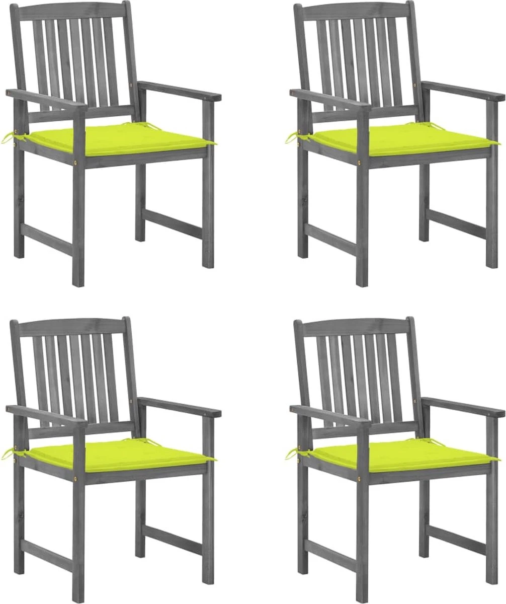 Ces chaises de jardin sont en bois d’acacia massif, ce qui les rend robustes et stables. Les oreillers offrent un confort supplémentaire. Chaque kussen a 2 jeux de cordes à fixer à la chaise.