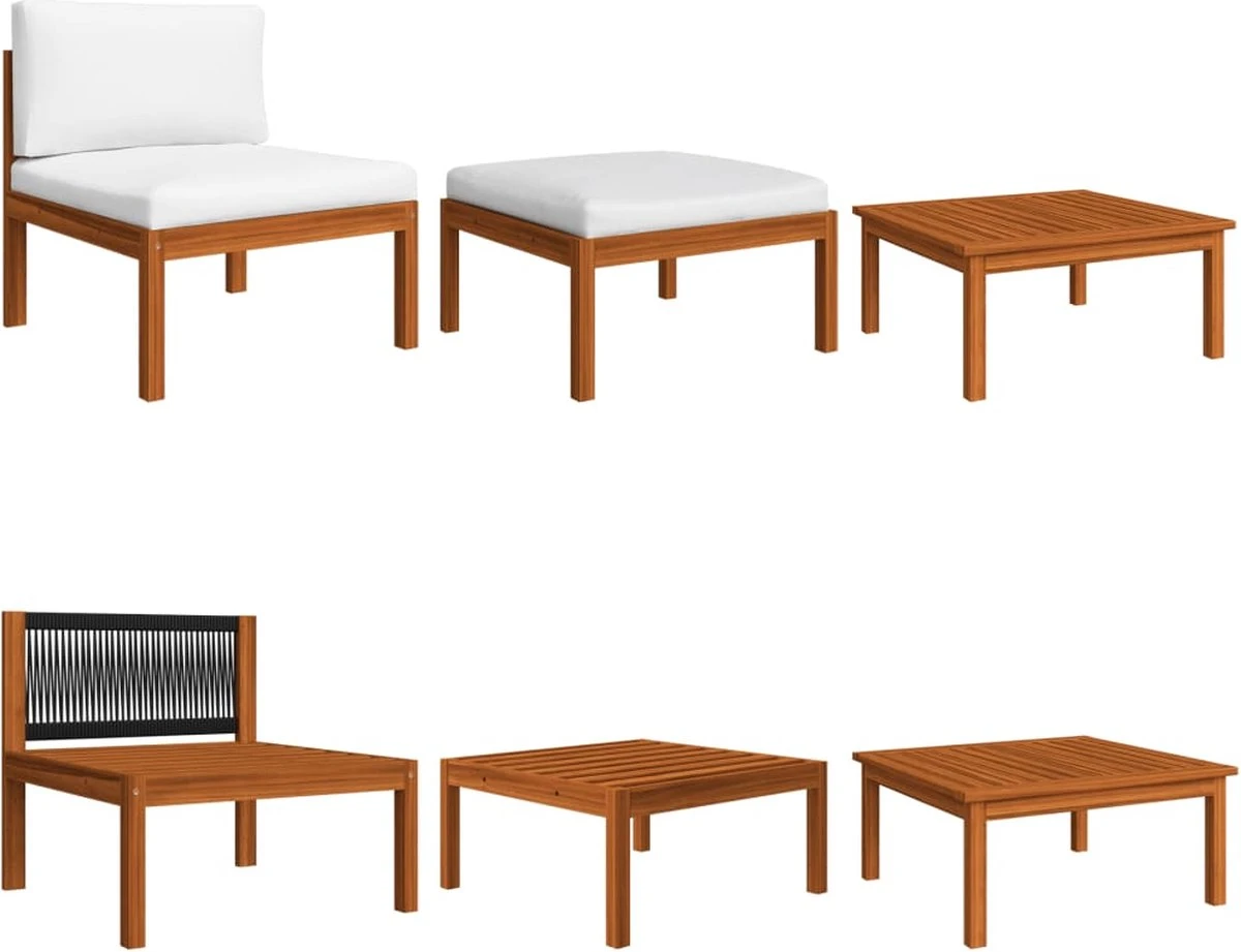 Cet ensemble de meubles est fait de bois d’acacia massif avec une finition à l’huile, ce qui le rend durable, stable et facile à nettoyer. La conception frappante de la corde du dossier fait de l’ensemble un véritable accroche-regard. Les coussins à rembourrage épais offrent un confort supplémentaire. La conception modulaire rend cet ensemble de salon facile à déplacer. Vous pouvez le combiner avec d’autres segments modulables pour créer votre eigen coin salon personnel !