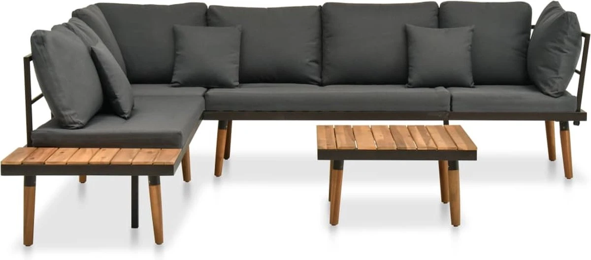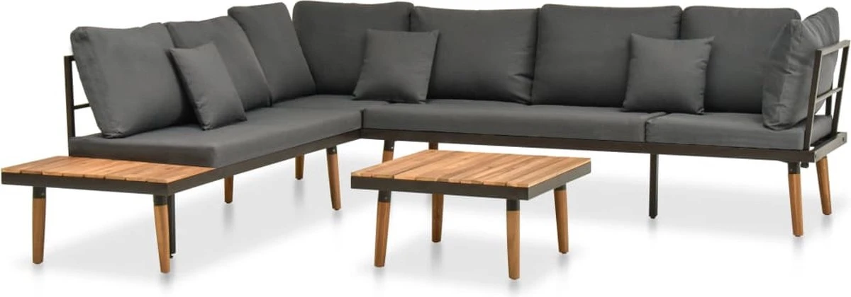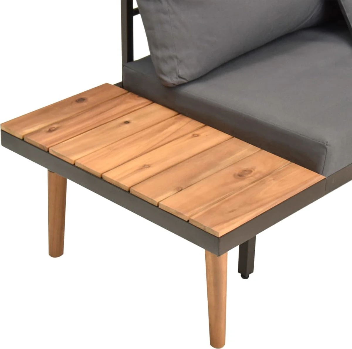 Nos meubles de jardin faciles à nettoyer et durables sont fabriqués à partir de bois d’acacia massif, un bois dur tropical résistant aux intempéries et durable. Le cadre en acier robuste garantit que l’ensemble est très stable et durable. Vous pouvez également placer des collations, des boissons, des tasses à thé, des livres et d’autres petits objets sur la petite partie en bois. Cet ensemble est livré avec des coussins rembourrés très confortables. Les housses en polyester faciles d’entretien peuvent être enlevées et lavées.
