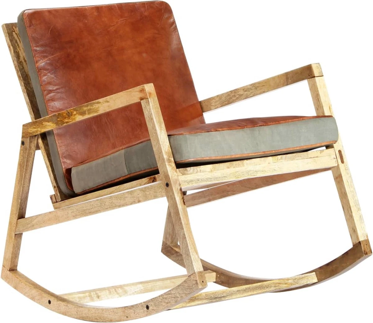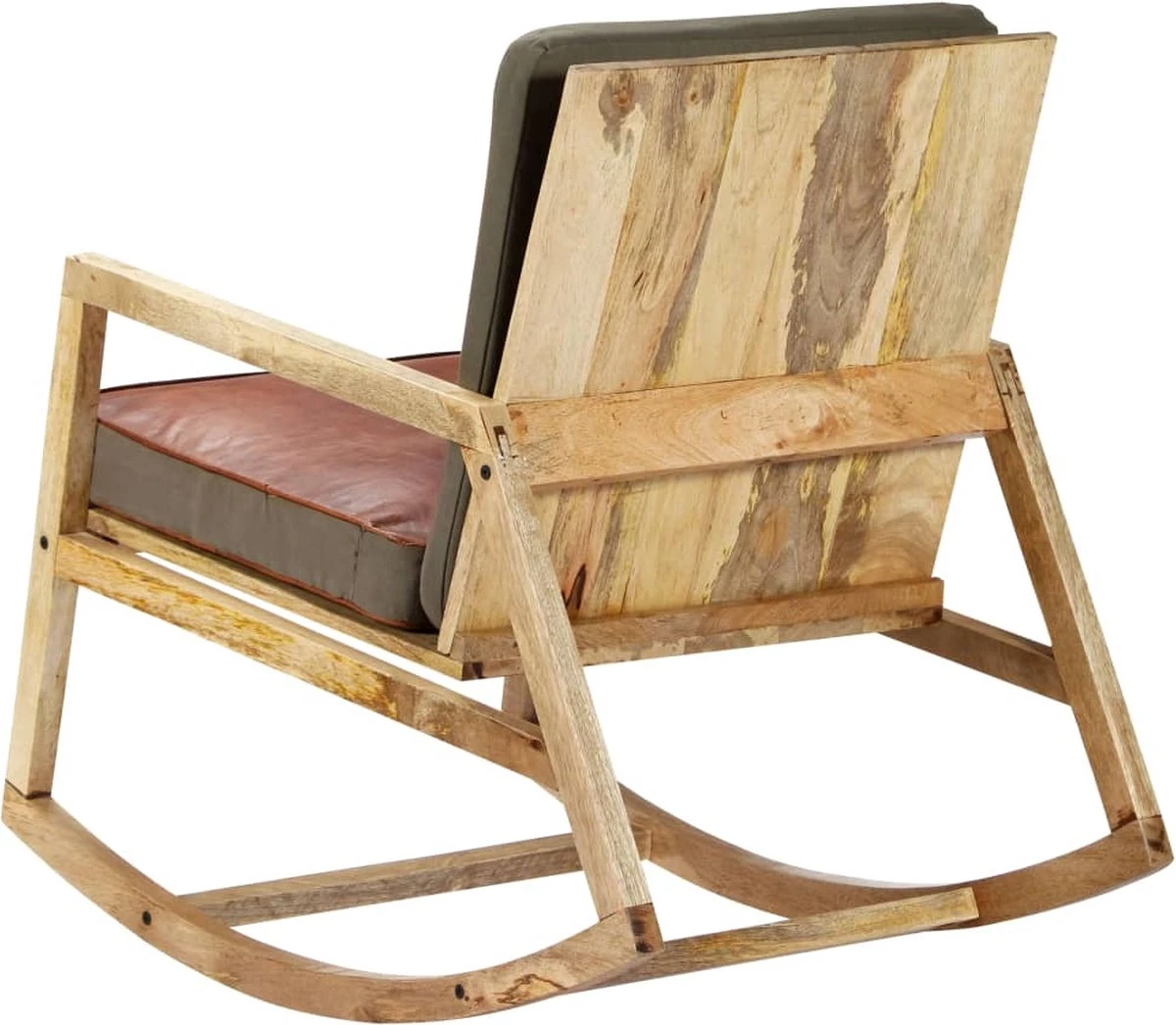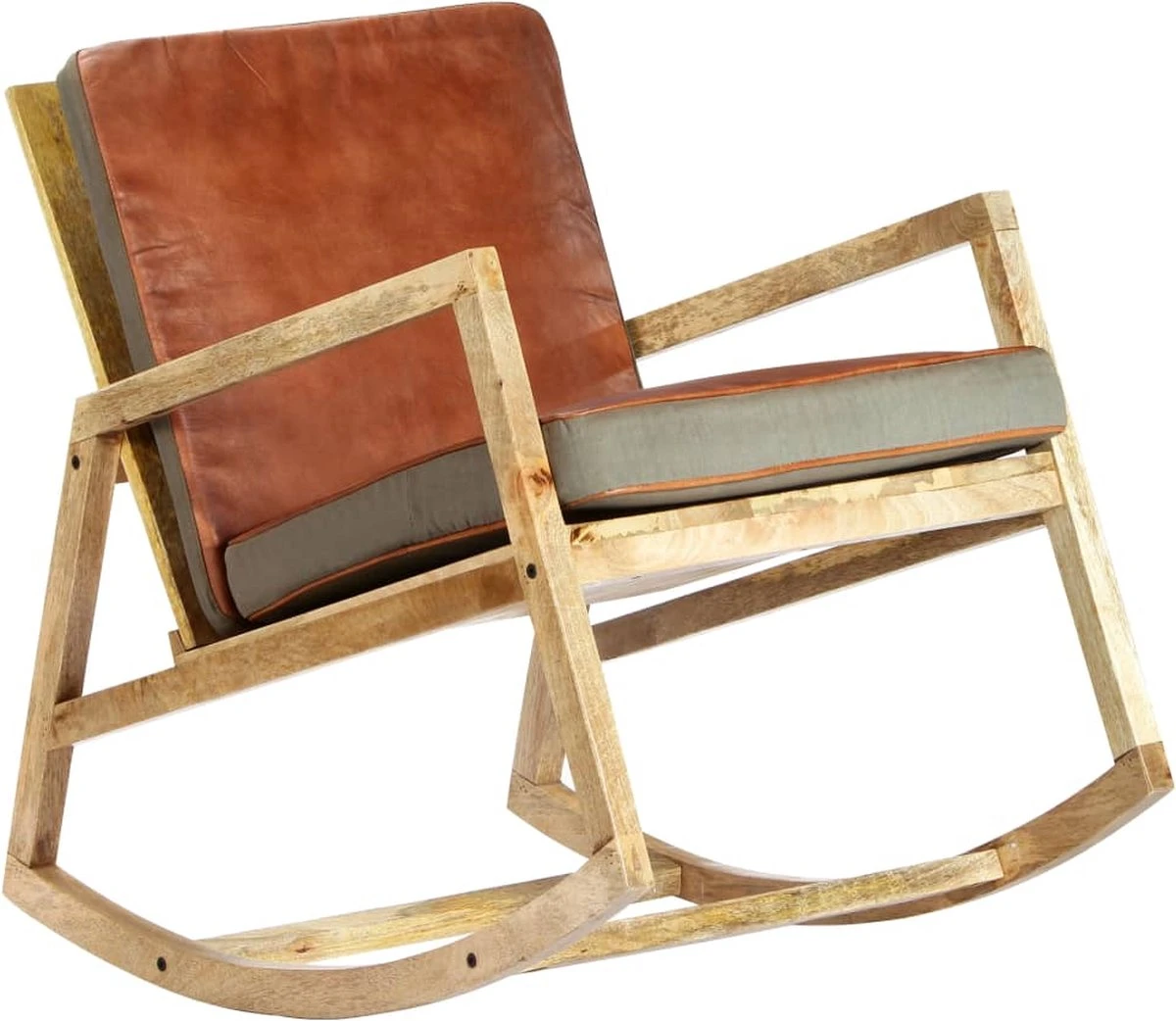 Le siège à voûte épaisse est fait de cuir véritable et de toile et offre ainsi un confort d’assise optimal. De plus, le cadre est en bois de manguier massif, un bois dur dense et robuste avec de belles rayures et des contours bruns ou dorés sur la surface, ce qui rend le fauteuil durable et stable. Vous pouvez placer la chaise berçante dans le salon ou la chambre pour profiter de bons livres et d’une tasse de café.