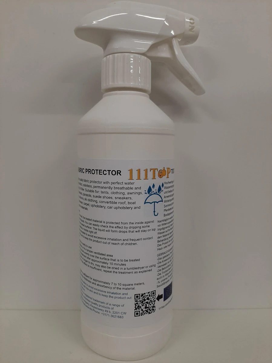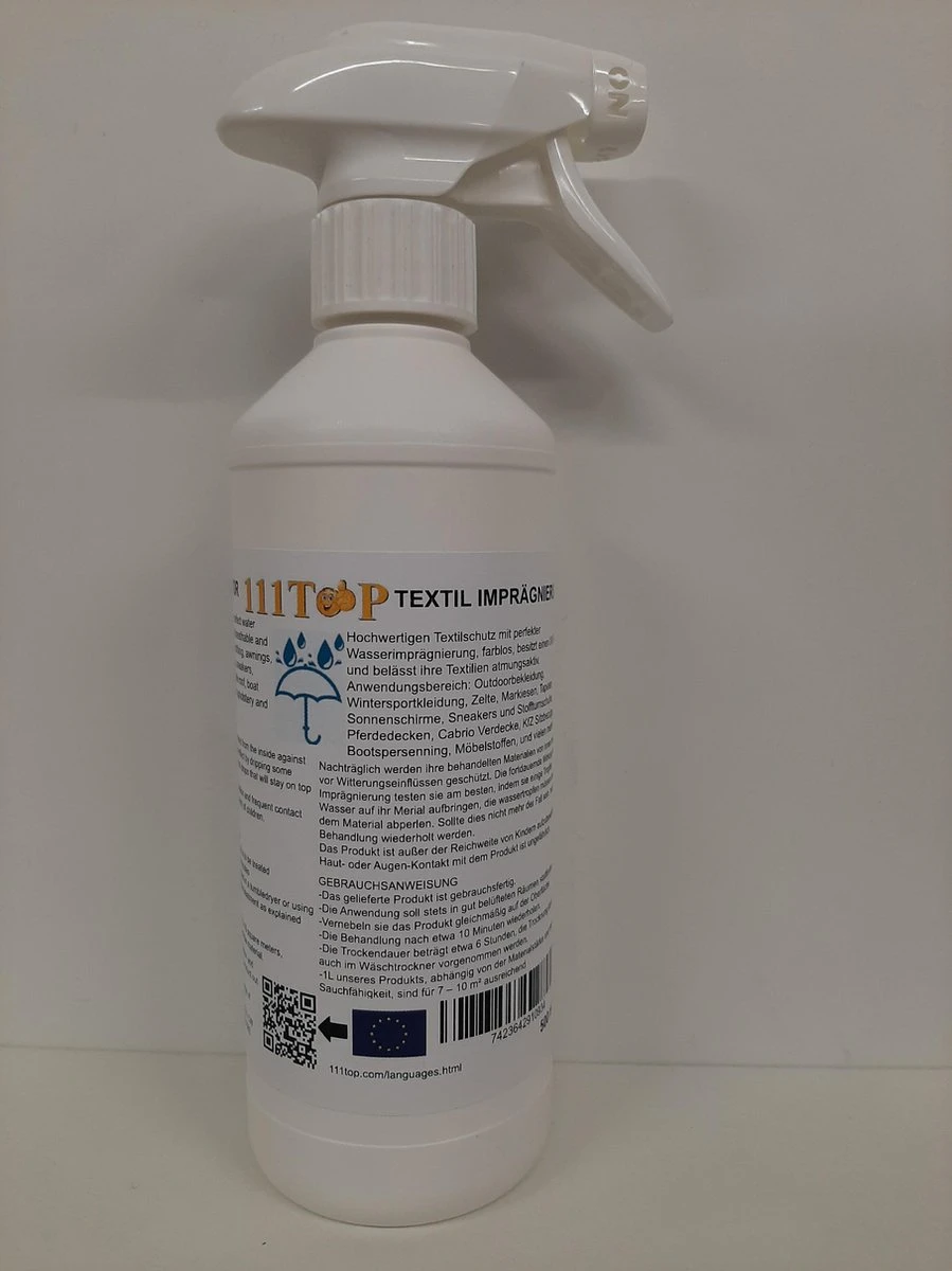 Protecteur Textile 111TOP, Textil Imprägnierung, Agent D’imprégnation Textile, Effet Hydrofuge Parfait, Incolore, Inodore, Respirant En Permanence Et Avec Filtre UV.