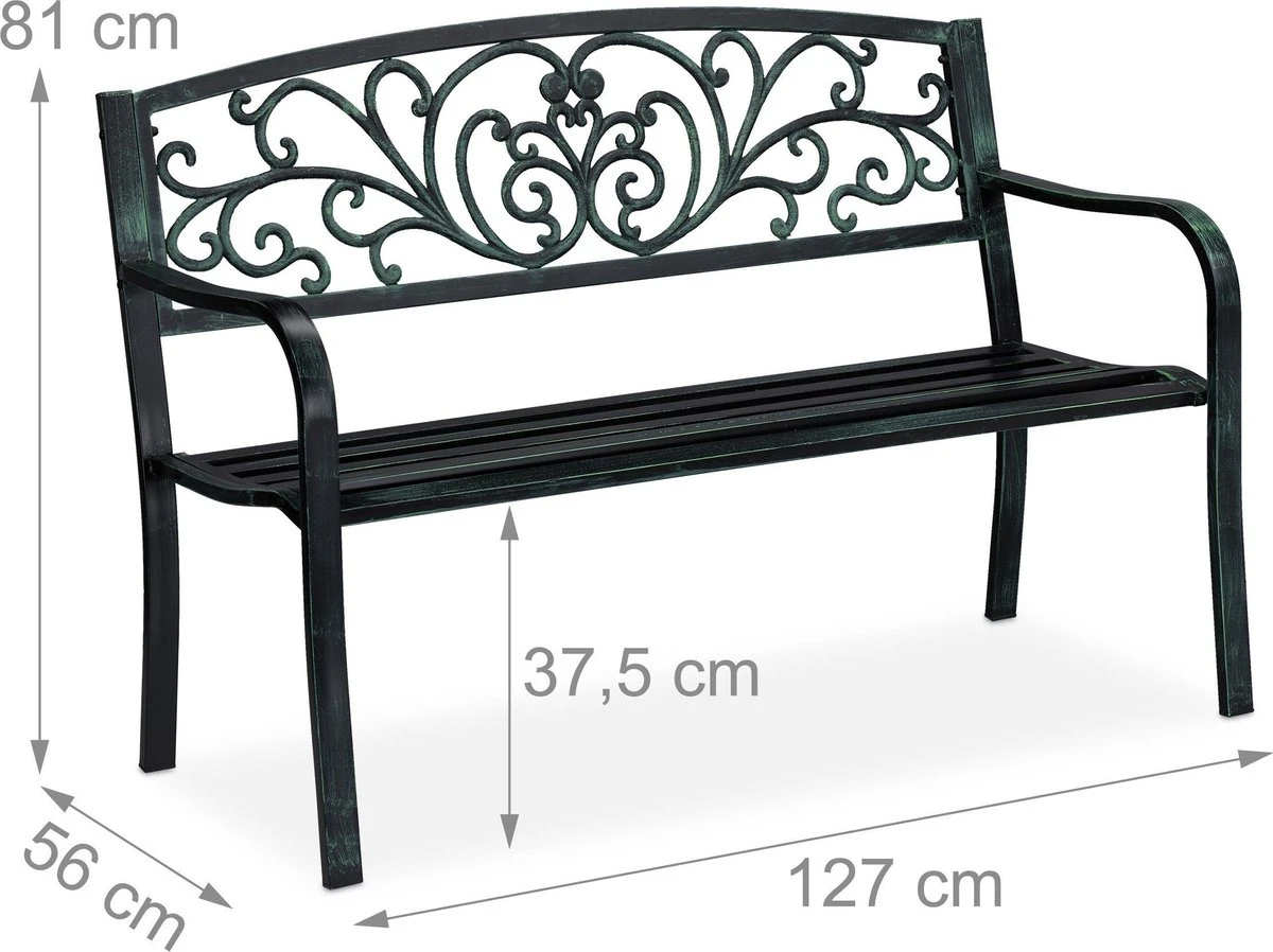 Relaxdays Banc De Jardin Antique – Banc De Parc – Banc De Balcon Deux Places – Fonte – Banc De Jardin Noir-vert