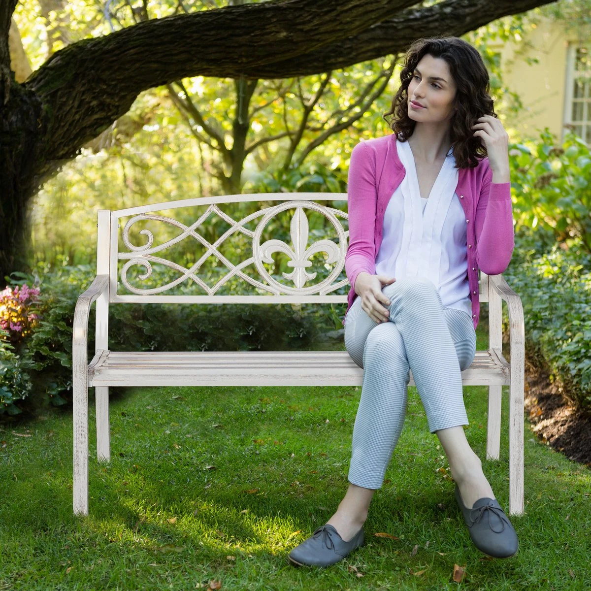 Relaxdays Banc De Jardin En Métal – Banc D’extérieur 2 Places – Banc En Fonte Avant Jardin – Banc De Balcon