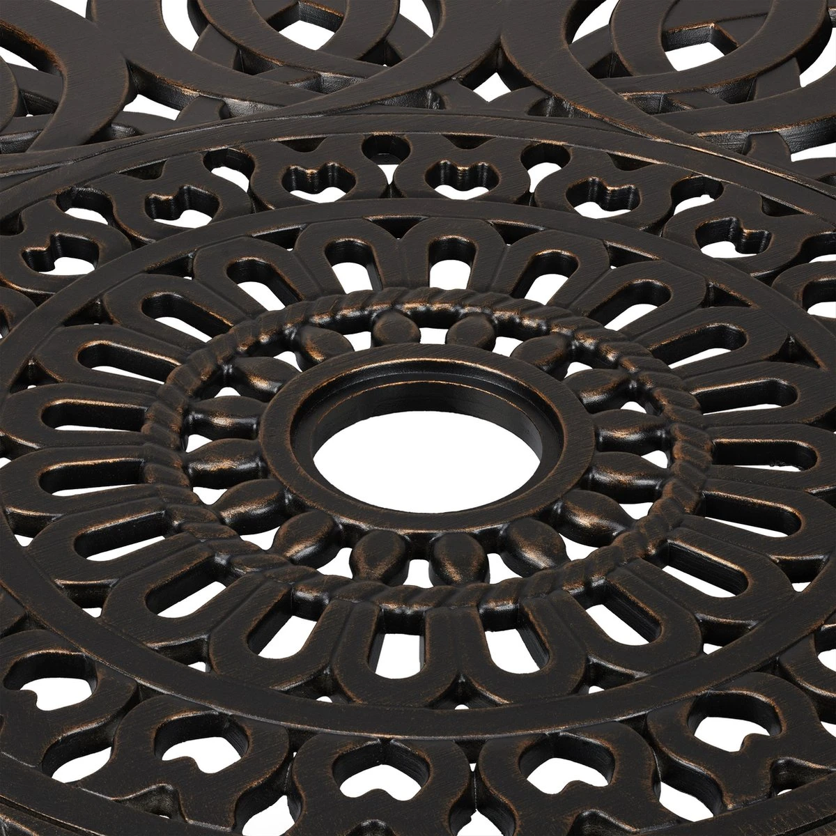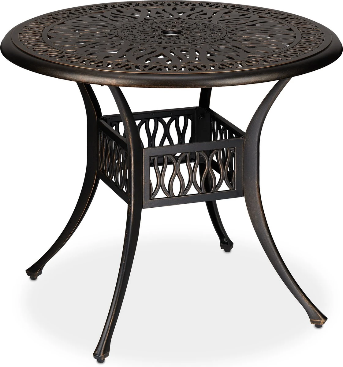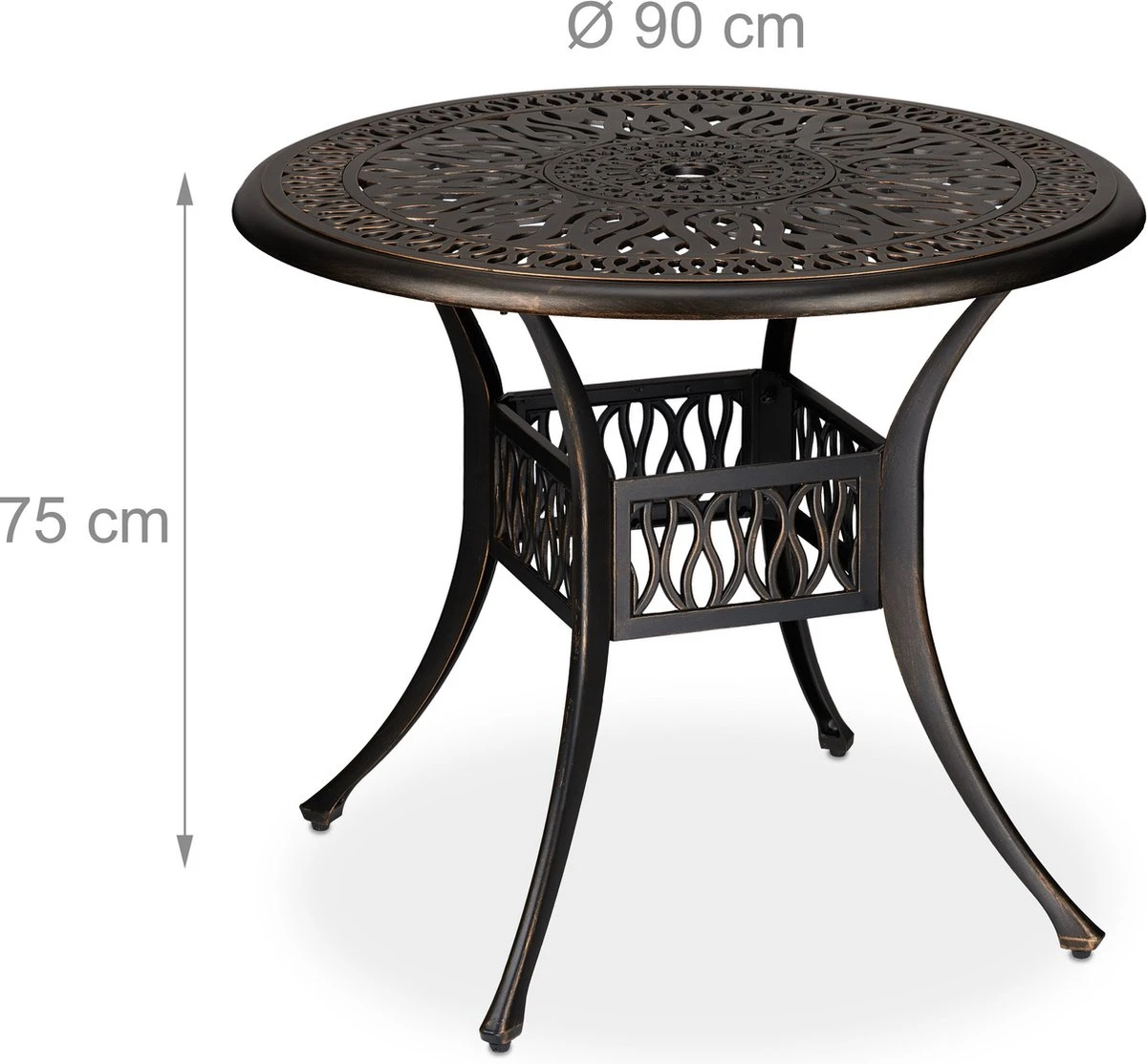 Si vous souhaitez également profiter au maximum de la saison des jardins entre amis et en famille, cette table de jardin est faite pour vous. Sur la grande table, vous pouvez vous asseoir ensemble et faire un barbecue ou savourer une tasse de café au soleil. Le point culminant de cette table est le trou intégré dans le plateau de la table, dans lequel vous pouvez placer un parasol. Cela vous permet de vous asseoir confortablement à l’ombre. Le cadre en acier robuste assure la stabilité et le design antique fait de la table un accroche-regard.