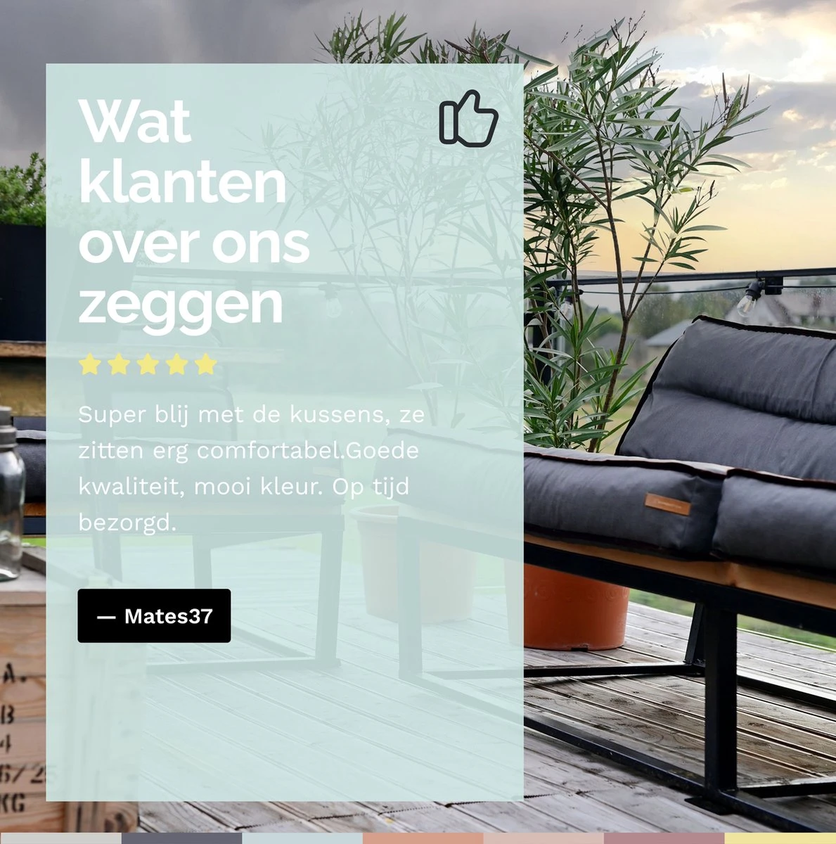 Le grand kussen est légèrement plus large pour couvrir les bords durs de la palette. Les oreillers sont à double face. Si un côté est sale, il peut être tourné vers l’autre, propre. Le produit est relativement facile à nettoyer. Dans la plupart des cas, un chiffon humide suffit. Si nécessaire, retirez le remplissage et lavez la housse elle-même, qui est très facile à retirer grâce aux fermetures à glissière cousues. Le rembourrage est en mousse de polyuréthane écrasée placée dans la doublure. Le rembourrage en mousse de polyuréthane garde sa forme et offre un soutien doux et confortable pour le corps.