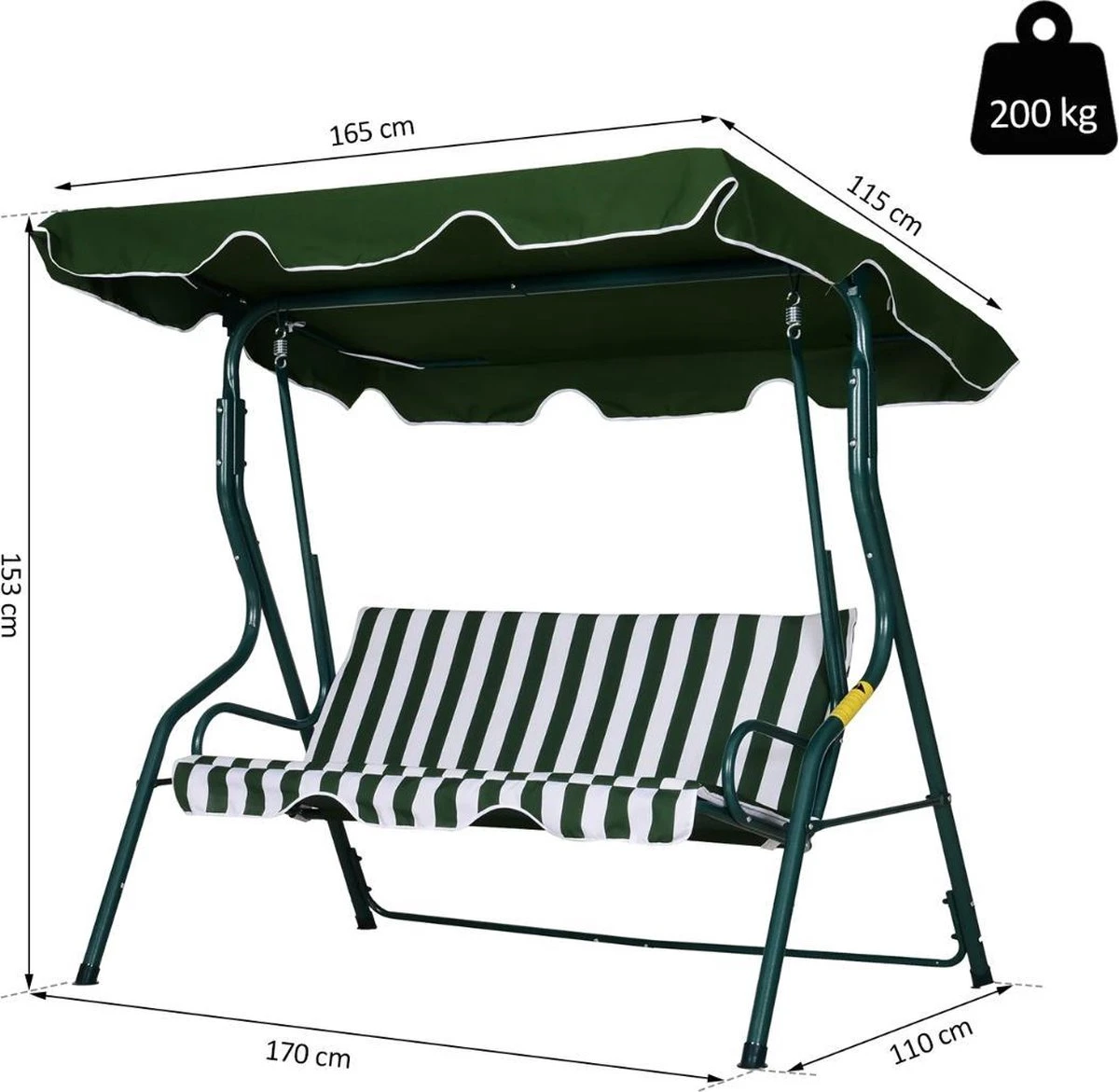 – Dimensions d’encombrement : L170 x l110 x H153 cm