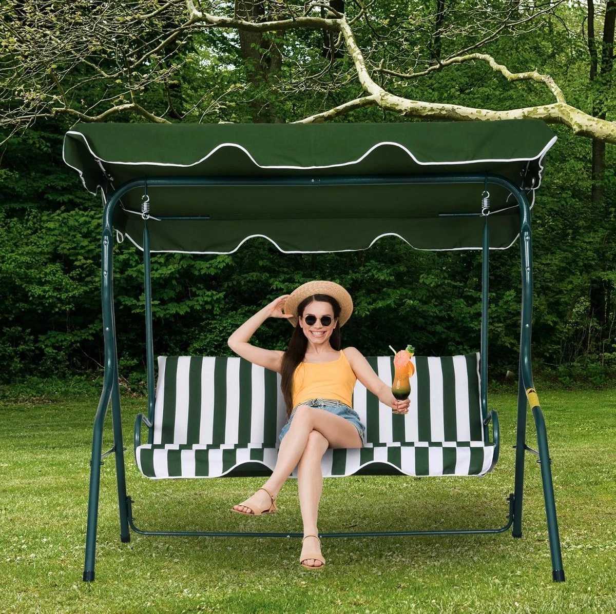 Le soleil brille et vous avez envie de vous détendre ! Entrez dans la balançoire de jardin Benbrook de Nancy’s , balancez-vous d’avant en arrière avec vos cheveux au vent. Détente au soleil !