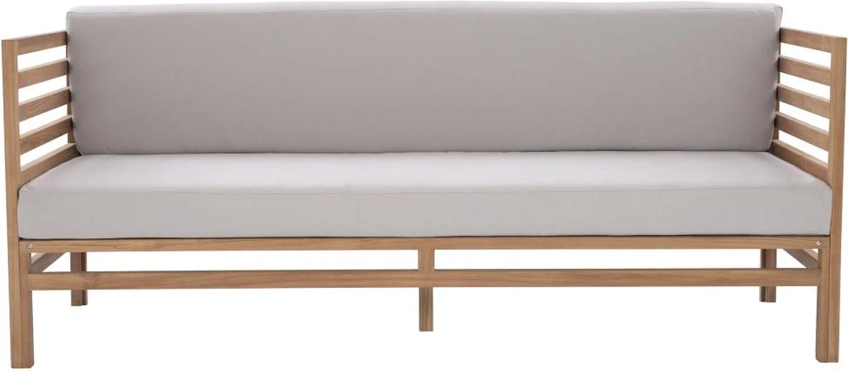 Le salon de jardin LINERI donne une touche d’exotisme à votre jardin avec son bois de teck couleur naturelle et son design épuré.