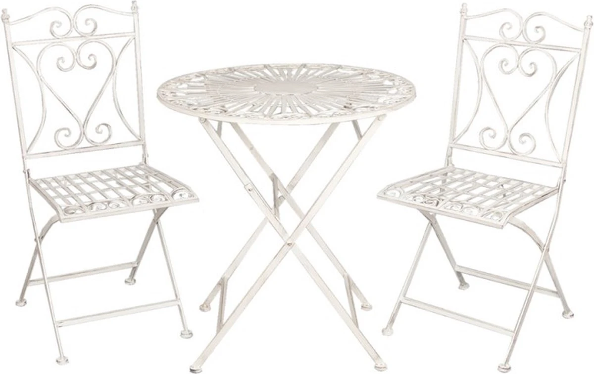 Set de bistro Wit rural Vintage Table de bistro Chaise de bistro (3 pièces) Ensemble de balcon Ensemble de jardin Ensemble de terrasse Curls Iron