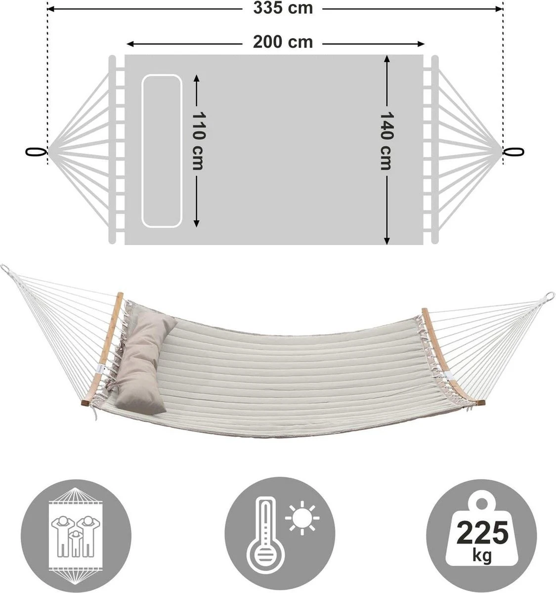 - Ce que vous obtenez : un hamac stable et amovible avec des tiges de bambou incurvées, un kussen moelleux et un confort maximal, pour que vous puissiez transformer votre jardin en un plaisir