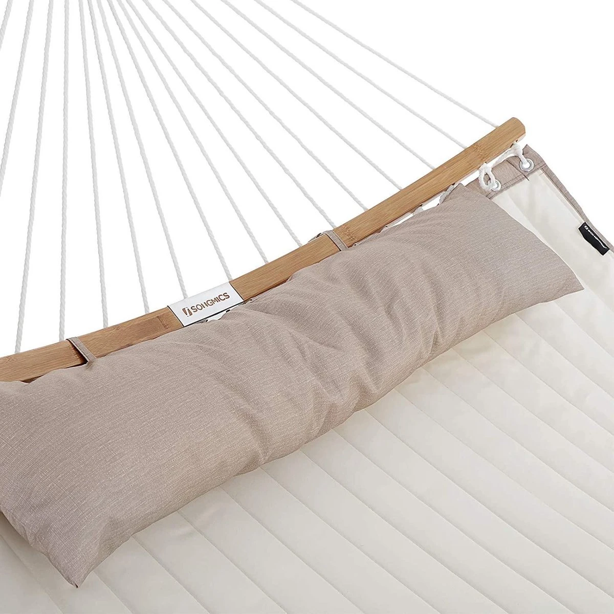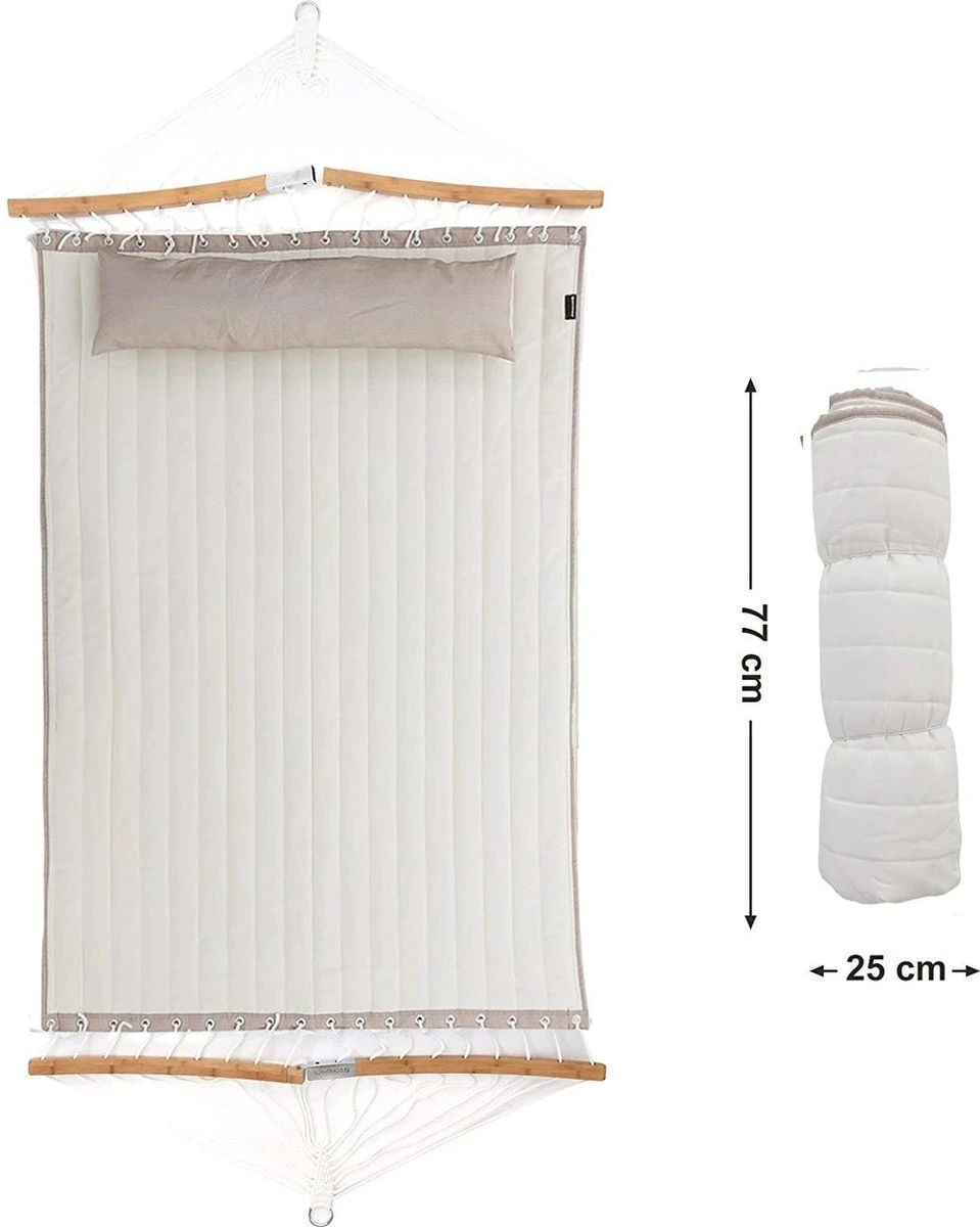 SONGMICS Hamac Pour 2 Personnes, Rembourré, Avec Tiges De Bambou Pliées Séparables, Avec Kussen, Tissu Oxford, 200 X 140 Cm, Charge Jusqu’à 225 Kg, Blanc Crème-beige GDC34BE