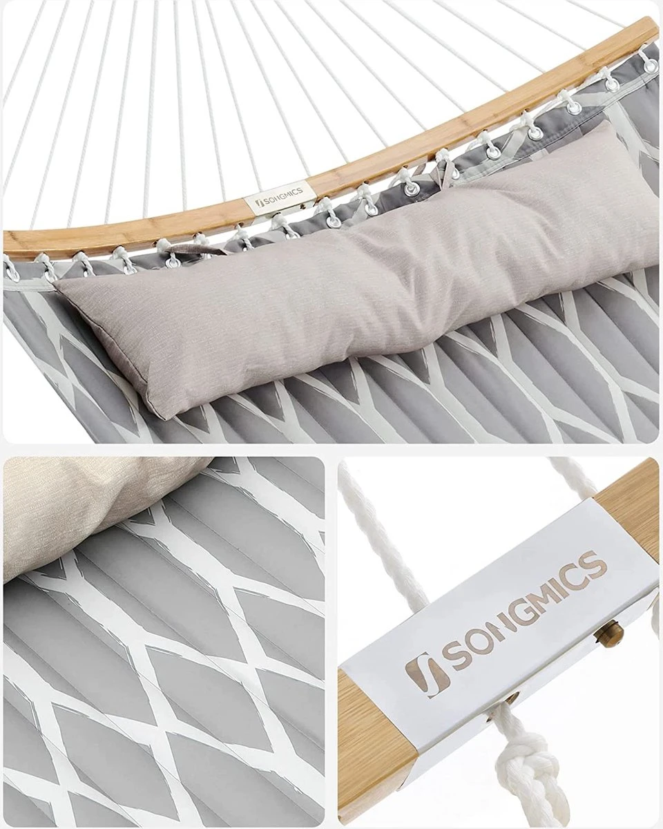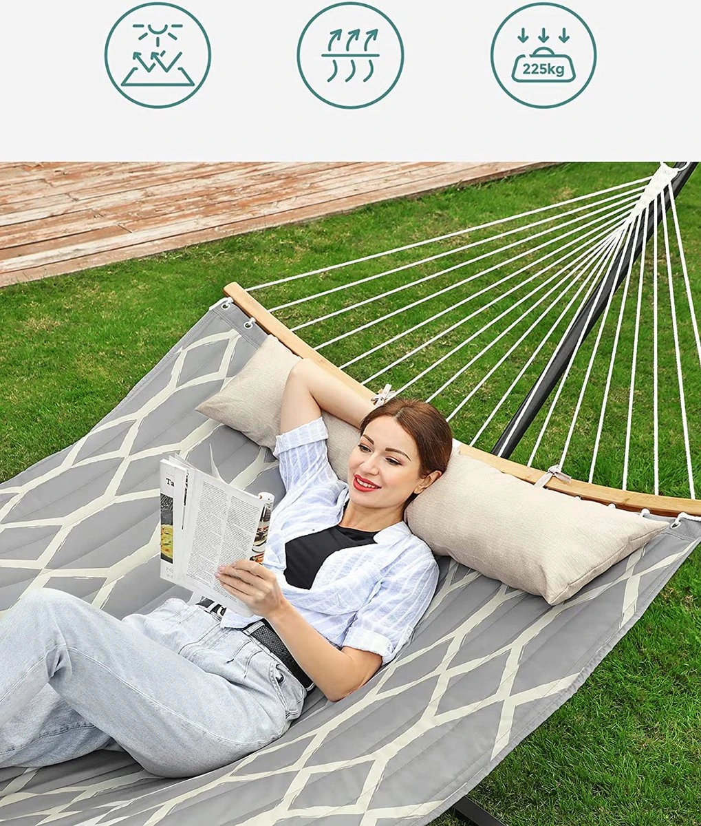 SONGMICS Hamac, Rembourré, Rembourré, Avec Tiges De Bambou Incurvées Divisibles, Avec Appui-tête, 200 X 140 Cm, Capacité De Charge Jusqu’à 225 Kg, Losanges Gris Et Beige GDC034G02