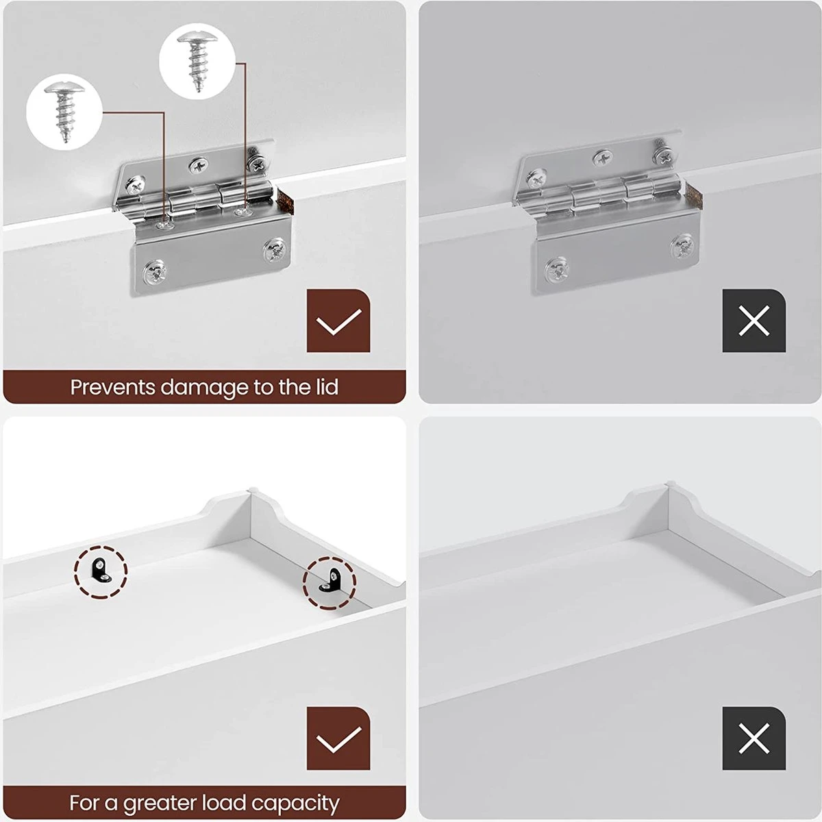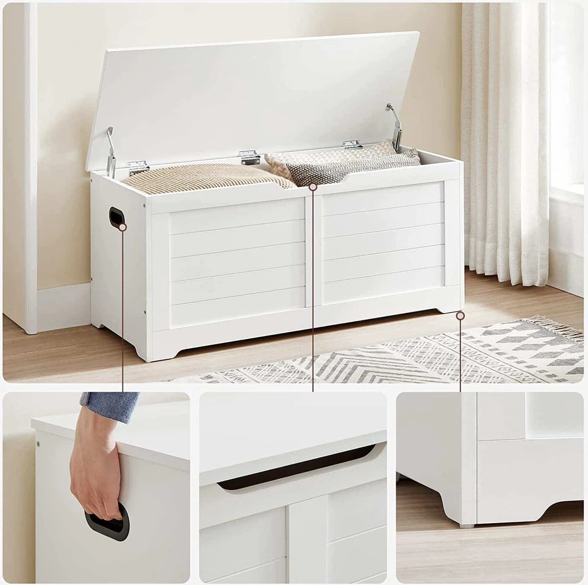 •Ce que vous obtenez : un coffre à jouets blanc au design minimaliste avec des pièces marquées et un guide clair pour un montage facile – et la possibilité de mettre plus d’ordre dans votre maison