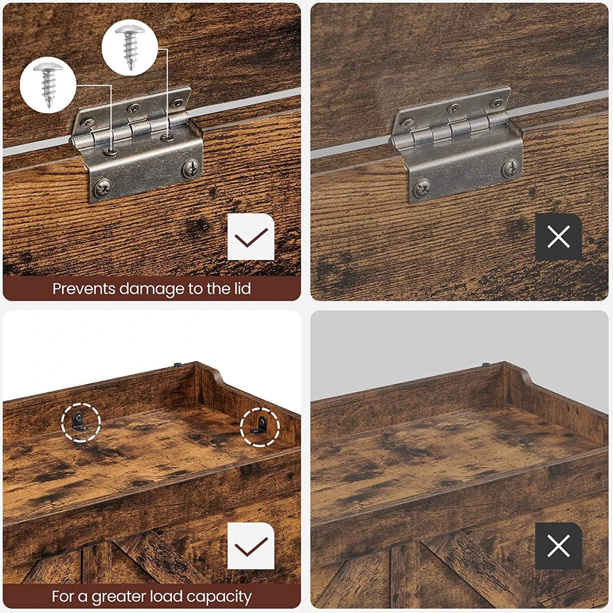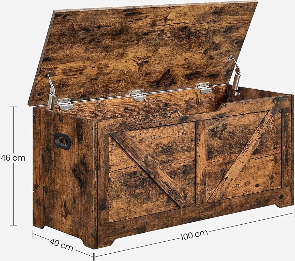 Vintage Flair: La couleur marron rustique du banc à chaussures s’intègre parfaitement dans un décor traditionnel intemporel et donc toujours populaire. Le design unique apporte le style campagnard dans votre maison Plus d’espace de rangement : ouvrez le couvercle – l’intérieur spacieux (100 x 40 x 46 cm) offre beaucoup d’espace pour les vêtements et les speelgoed. Grâce aux deux charnières avec fonction de maintien en continu, aucun risque de se coincer les doigtsFacile à déplacer : à l’aide des deux poignées pratiques sur les côtés, vous pouvez déplacer ce meuble de rangement partout où vous en avez besoin, par exemple dans l’entrée, dans la chambre des enfants ou dans le salonPrend de la place – Cette boîte est faite de copeaux de bois durables et peut supporter jusqu’à 100 kg. De cette façon, vous pouvez vous asseoir pour mettre ou enlever vos chaussures en toute tranquillitéCe que vous obtenez : un coffre à jouets avec un grand espace de rangement – un manuel clair (peut ne pas être disponible en néerlandais) et des pièces marquées pour un montage rapide et sans effort