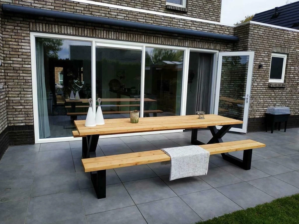 Table De Pique-nique Douglas | Structure Noire | 350 Cm | Cadre En X | Table De Pique-nique Robuste
