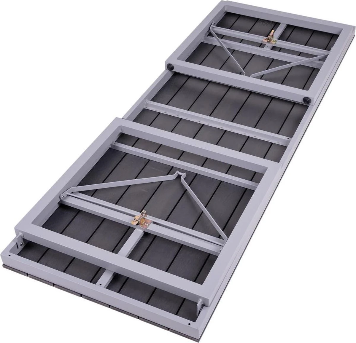 La table de pique-nique pliable en plastique-aluminium MaximaVida Hamburg 150 cm gris est fournie dans une boîte aux dimensions 155 x 75 x 10 cm et pèse environ 18 kg.