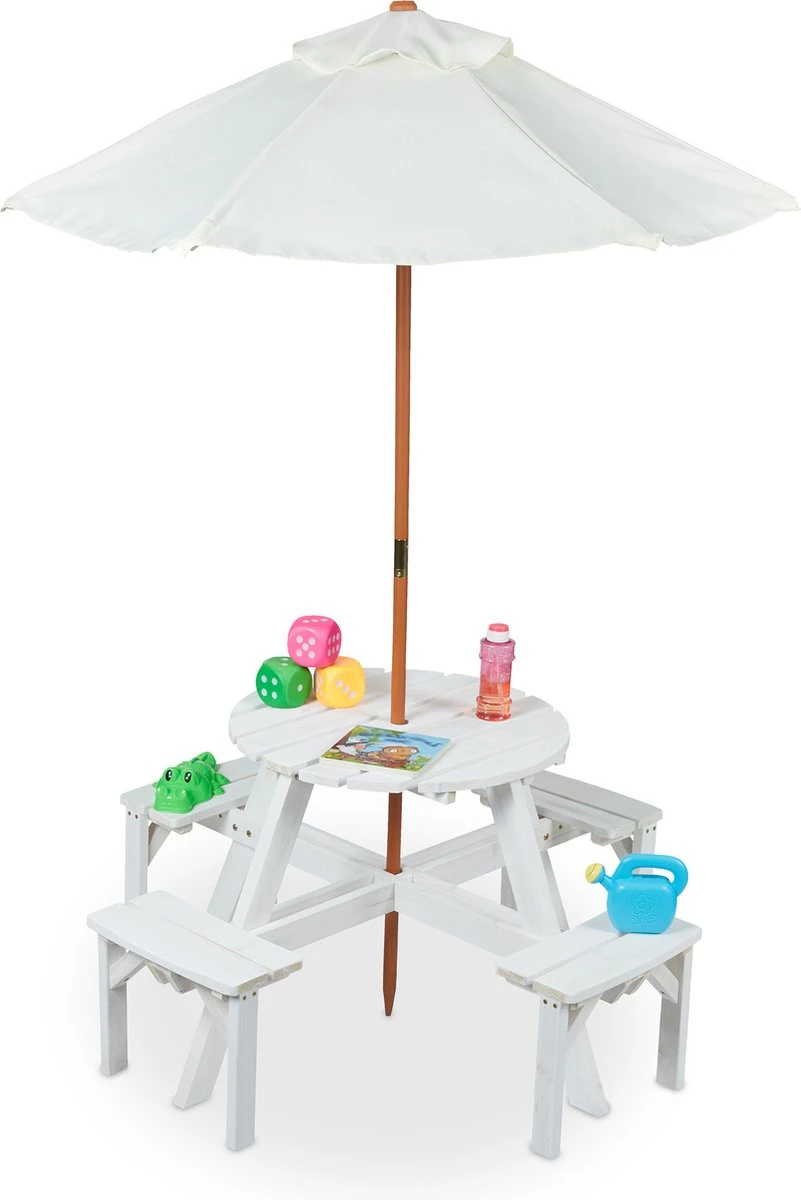 Table de pique-nique pour enfants avec parasol en détail