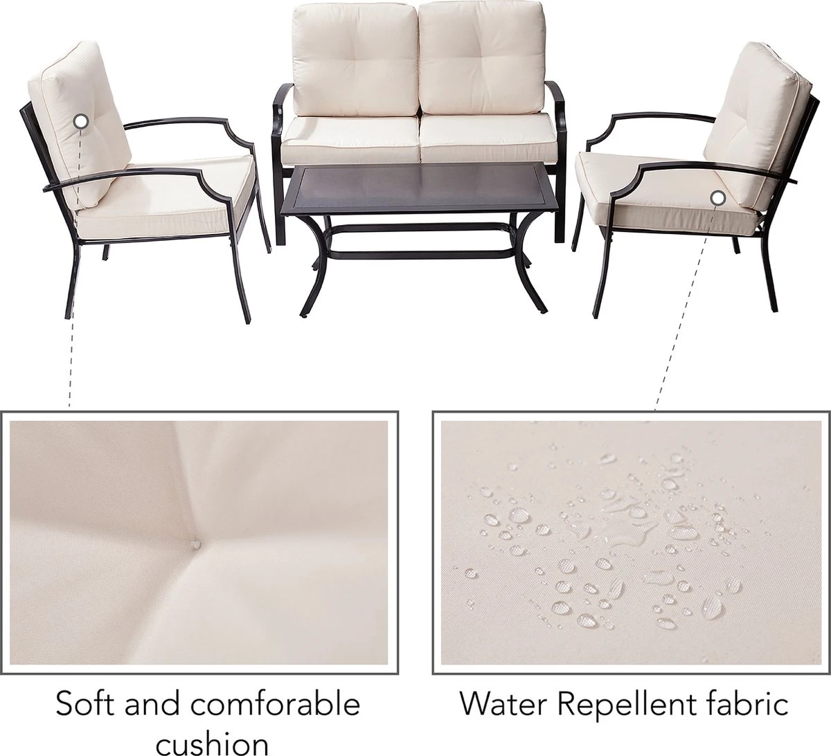 - COUSSINS AMOVIBLES: Complet avec coussins amovibles, pour un rangement et un nettoyage faciles. Les Coussins sont également résistants aux intempéries, ce qui rend cet ensemble de jardin durable et confortable.