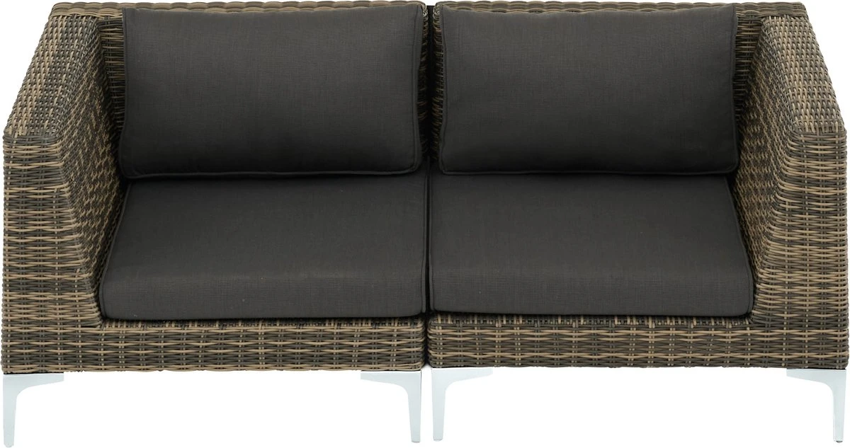 Le bel ensemble Villanova convainc par ses possibilités de combinaison illimitées. Grâce au cadre en aluminium enduit de poudre, le mobilier de salon est étonnamment léger et en même temps extrêmement robuste, de sorte que le gel, le soleil et la pluie ne peuvent guère faire de mal. Le matériau en osier durable est basé sur un tissage naturel, de charmantes différences de couleurs et sa structure typique. Les coussins d’assise et de dossier extra épais, qui s’adaptent en douceur au corps, méritent une attention particulière – confortable, individuel et résistant aux intempéries : l’ensemble polyvalent en osier Villanova.