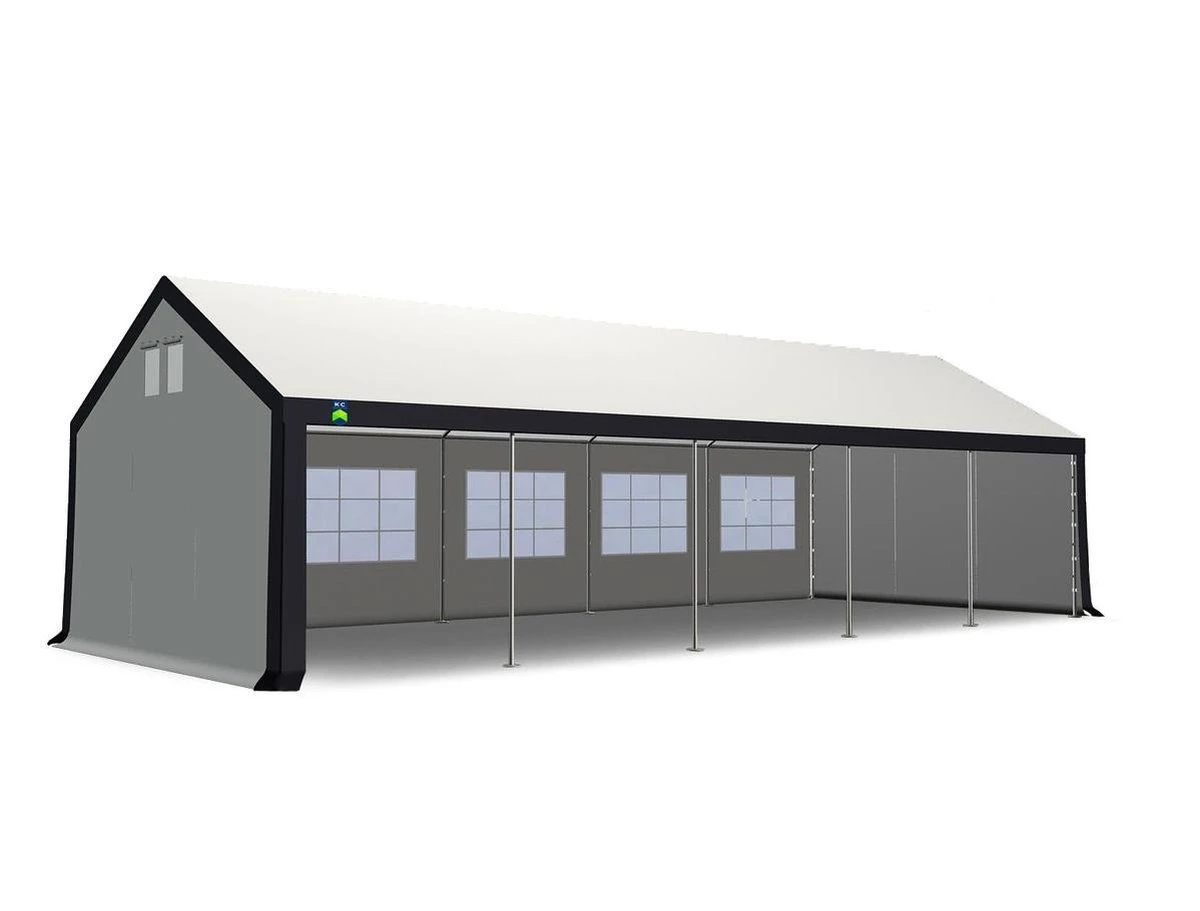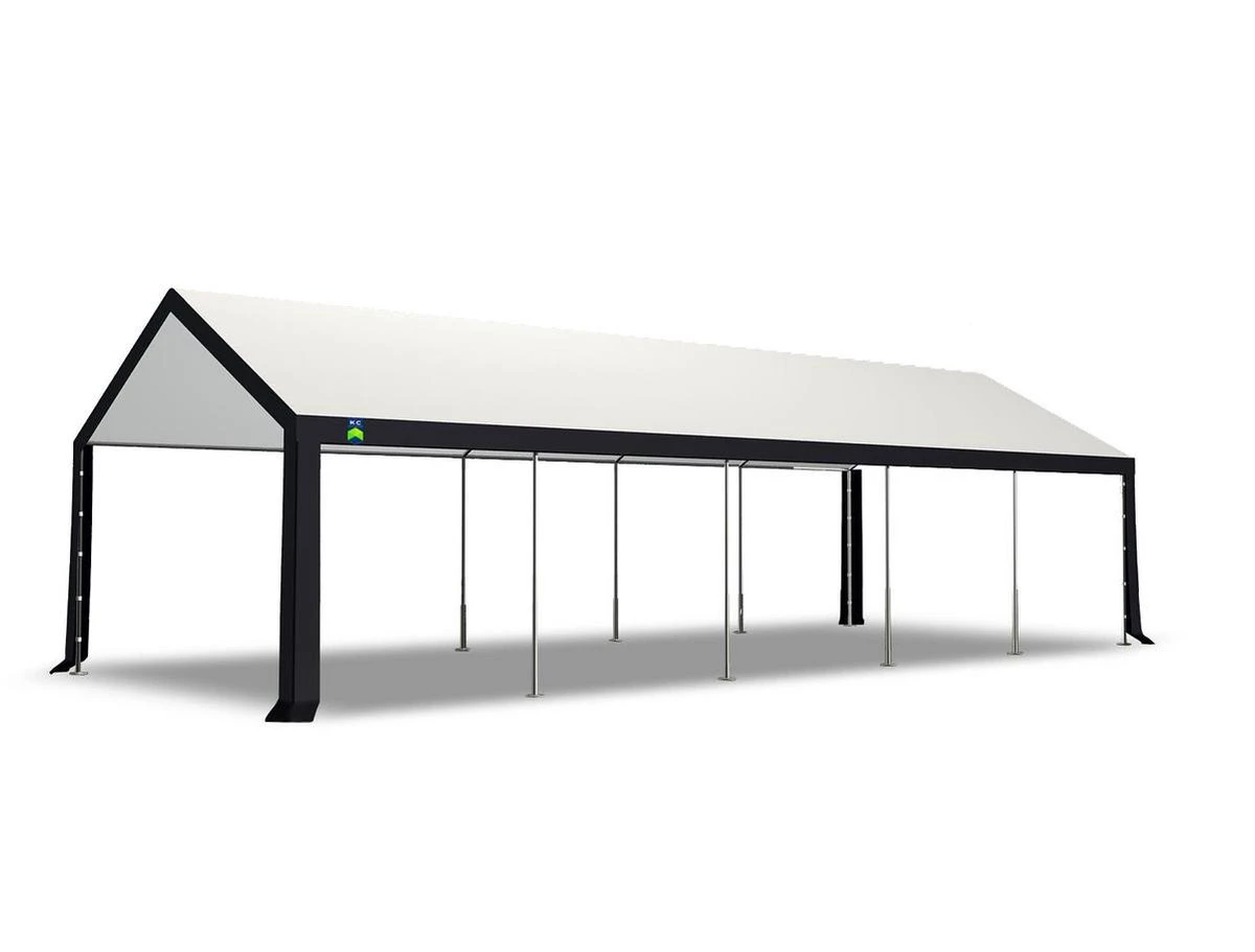 Cette tente de fête KC PE est offert complètement verrouillable. Cadre complet, toit, parois latérales, 2 panneaux d’extrémité, élastique avec boule, œillets à vis, crochets de montage, cordes à haubans et chevilles.