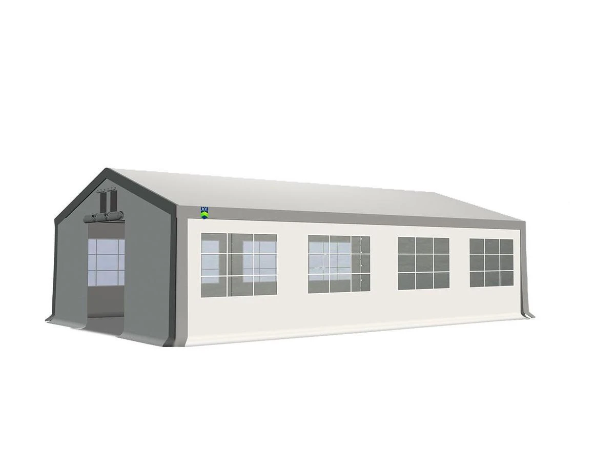 Cette tente de fête KC PE est offert complètement verrouillable. Cadre complet, toit, parois latérales, 2 panneaux d’extrémité, élastique avec boule, œillets à vis, crochets de montage, cordes à haubans et chevilles.