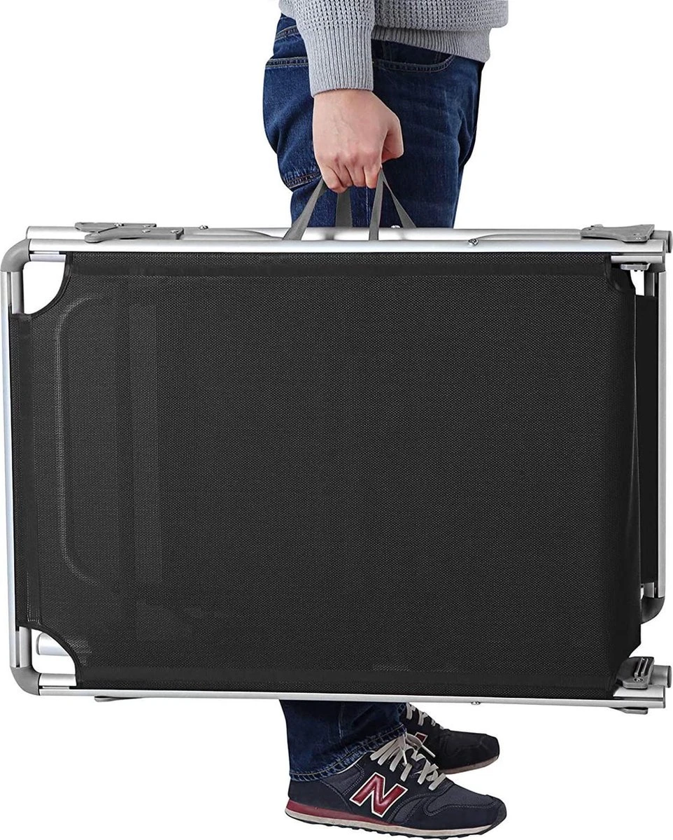 Détails du produit: La couleur noire Matériau : aluminium, tissu en fibres synthétiques Dimensions : 55 x 193 x 31 cm (L x l x H) Poids : 4,9 kg Charge statique maximale : 150 kg