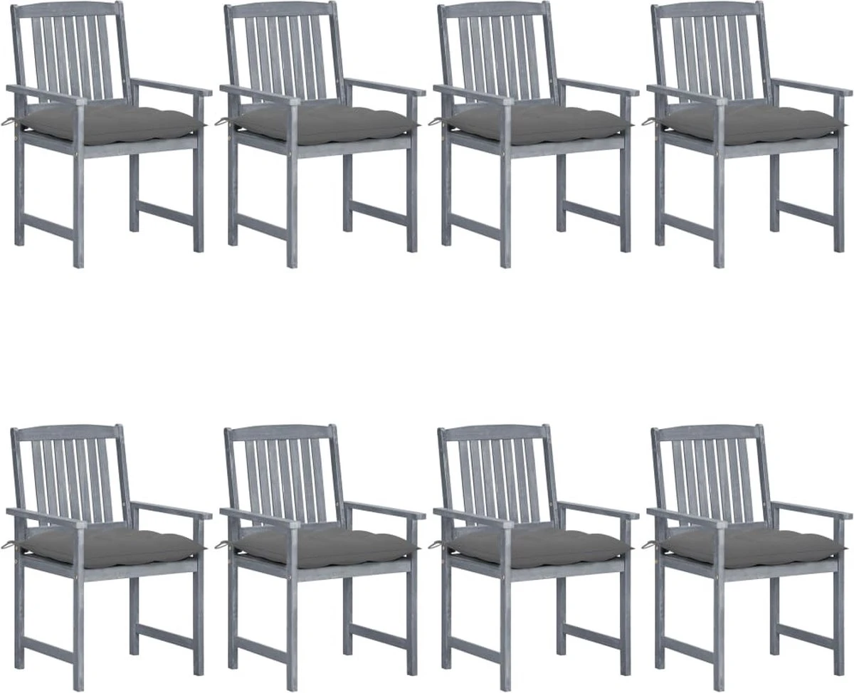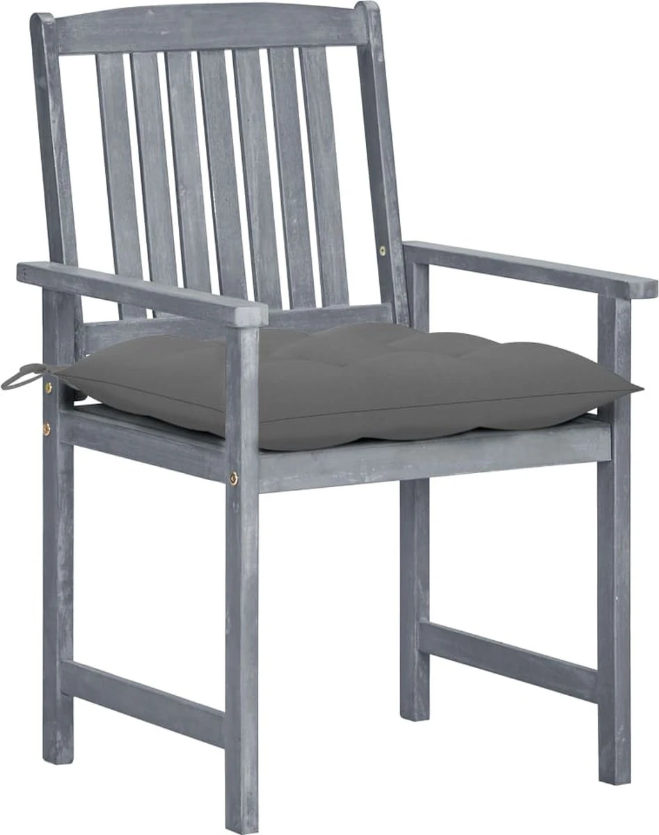 Ces chaises d’extérieur sont fabriquées en bois d’acacia massif avec une finition grise. Le bois d’acacia massif est un bois dur à grain dense qui a la force de supporter beaucoup de poids et de résister à l’usure. Cet ensemble de chaises en bois est stable, durable et résistant aux intempéries. La surface des sièges est facile à nettoyer avec un chiffon humide. Les kussen inclus offrent un confort supplémentaire.