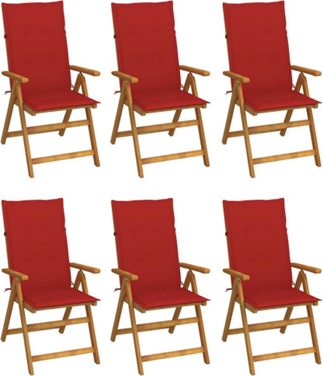 La chaise pliante est en bois d’acacia massif, un bois dur tropical, ce qui la rend stable et durable. La surface huilée est facile à nettoyer avec un chiffon humide. La chaise de salle à manger est réglable sur 5 positions, de sorte qu’elle offre un confort d’assise optimal. Il peut également être plié pour économiser de l’espace lorsqu’il n’est pas utilisé. Les oreillers inclus offrent un confort supplémentaire lorsque vous vous prélassez ou dînez. Chaque kussen a deux jeux de cordes de chaque kanten et une bande élastique derrière le dossier pour fixer fermement le kussen à la chaise.