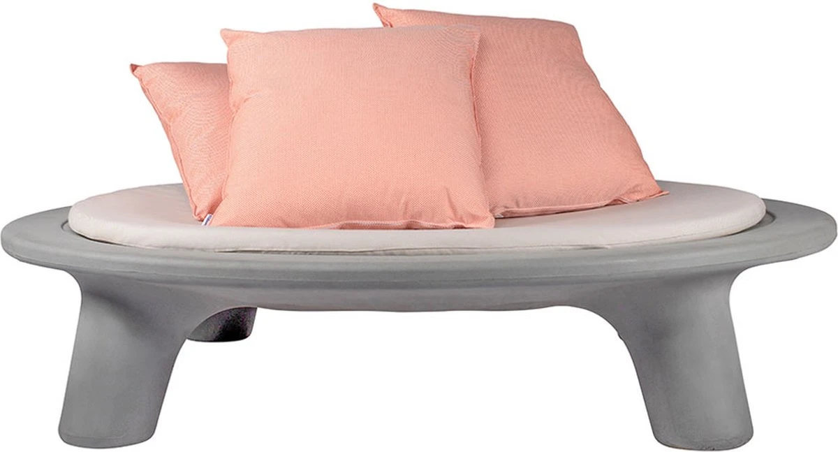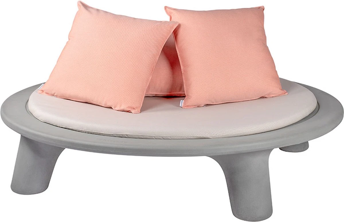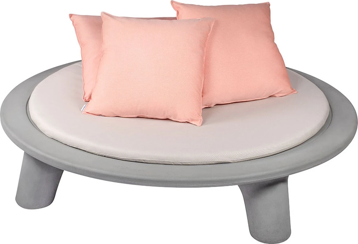 Le Flying Dishman, conçu par Joep van Lieshout, est un îlot lounge rond en polyéthylène (PE). Ce matériau est très facile à recycler et le produit contient donc 60% de plastique recyclé post-consommation, ce qui le rend robuste et durable. Les 40% restants sont encore du plastique nieuw . La conception ronde de la coque du siège permet une vue à 360 degrés et peut accueillir 2 à 3 personnes allongées. Profitez de la nature et détendez-vous sur le Flying Dishman. Livré en standard avec un jeu de coussins de la couleur de votre choix : vert ou orange. Le nouvel ensemble de coussins se compose d’un grand matelas d’un diamètre de 165 cm et d’une épaisseur de 40 mm, de deux coussins de 70×70 cm et d’un kussen de 100×70 cm. Le matelas est composé d’un tissu d’extérieur imperméable beige clair avec un rembourrage en mousse de polyuréthane HR. Aussi appelée mousse froide. Les coussins sont également faits d’un tissu d’extérieur imperméable et ont un rembourrage en fibre de polyester. Le matelas et les oreillers ont une fermeture éclair pour que les housses puissent être retirées et lavées. Nous avons une housse imperméable () disponible comme accessoire pour le Flying Dishman, afin que le matelas et les oreillers soient protégés. Cependant, il est tout de même fortement recommandé de ranger les coussins et matelas à l’intérieur dans un endroit sec hors saison d’utilisation.