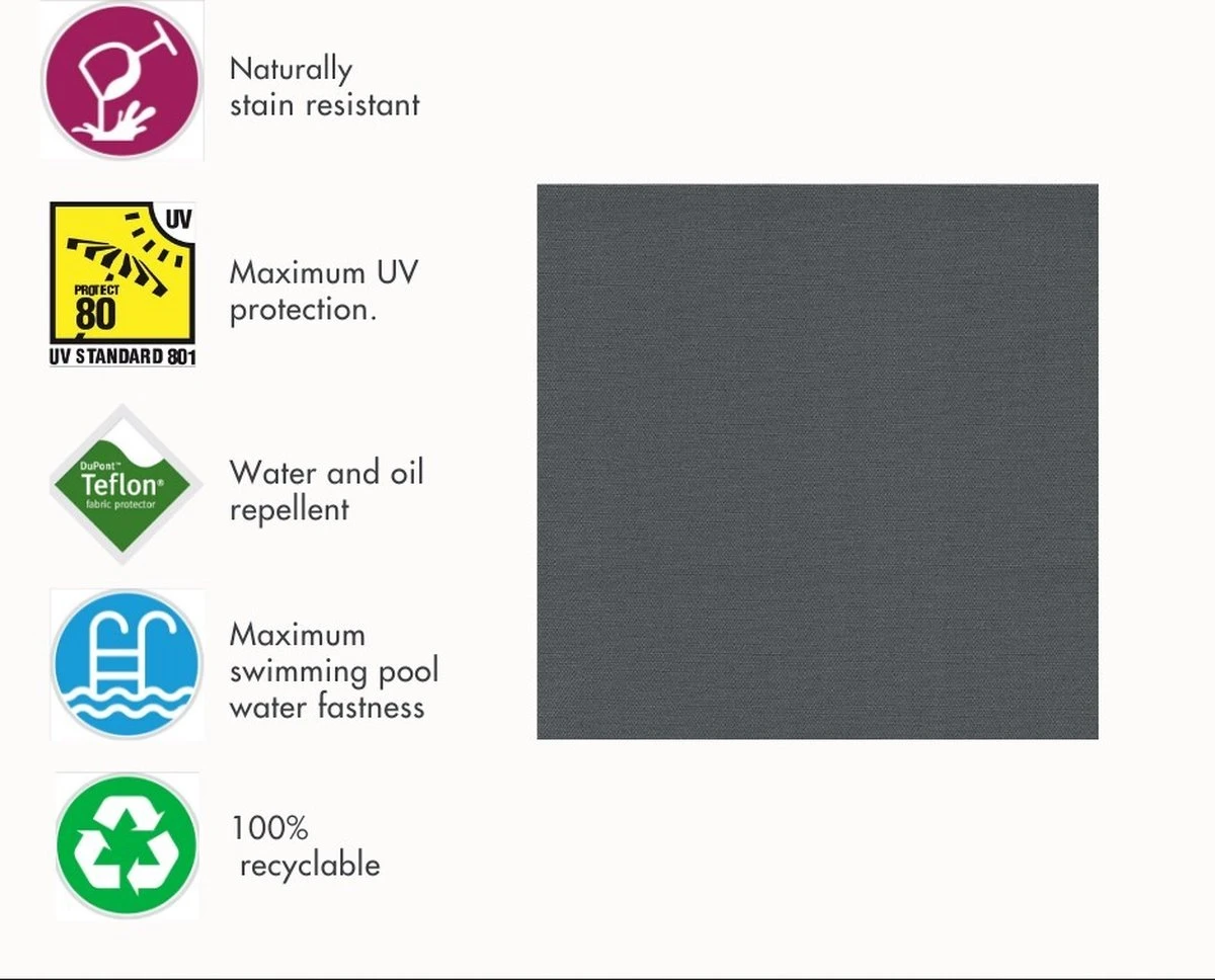 Le coussin est hydrofuge et anti-salissures de couleur anthracite.