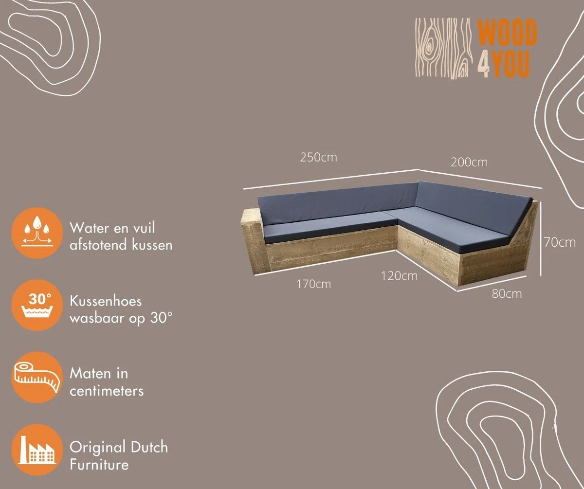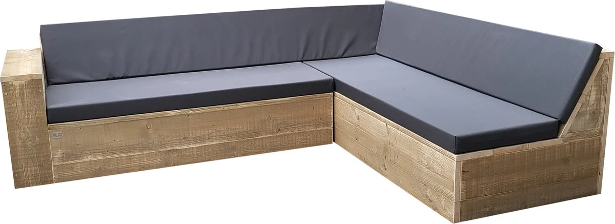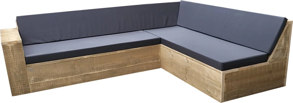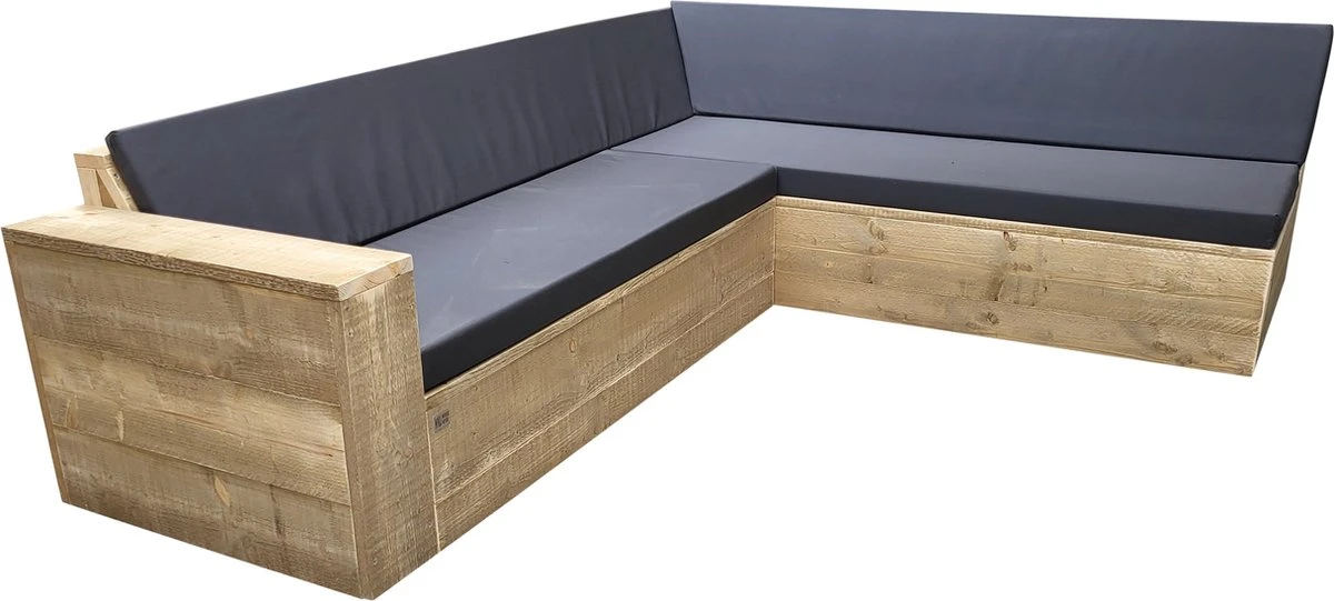 Un joli salon en forme de canapé d’angle. Ce canapé lounge échafaudage a un design spacieux grâce à son design unique. Il n’y a pas d’accoudoir d’un côté. Le bois d’échafaudage obsolète donne au banc une apparence belle et robuste. Le dossier du canapé est fermé, de sorte que le produit peut également se tenir dans des espaces ouverts. Allround lui donne un design élégant. Qui ne voudrait pas profiter du soleil ? Cela donne l’avantage que l’ensemble de salon a l’air très cool dans chaque jardin. Ce banc de jardin repose sur des blocs de bois dur, de sorte que le produit est détaché du sol, ainsi le bois du banc ne boit pas l’humidité du sol. Ce modèle comprend des coussins anti-taches et hydrofuges (anthracite). Ces coussins faits main résistent à la pluie. – Les housses des coussins ont une fermeture éclair. – Les housses sont lavables à 30 degrés. – Aspect serré tout autour. Qu’est-ce que le bois d’échafaudage? Le bois d’échafaudage est un bois d’épicéa et est le bois d’un conifère. Le conifère est originaire du nord-ouest de l’Europe.